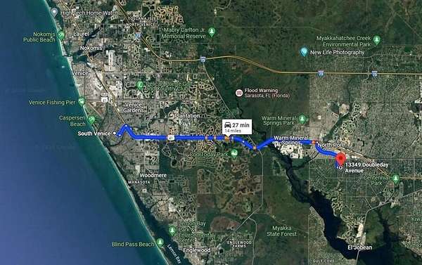 Head west toward US-41 N for 0.1 mi. Turn right onto US-41 N and continue for 0.2 mi. Turn left onto S Sumter Blvd and continue for 0.4 mi. Continue onto McCabe St for 0.5 mi. Turn right onto Doubleday Ave. Your destination will be on the left