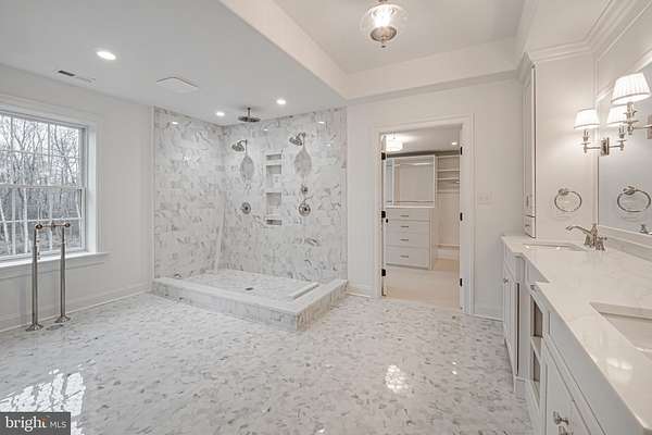 - Breakfast Area, Butlers Pantry, Carpet, Chair Railings, Crown Moldings, Dining Area, Double/Dual Staircase, Eat-In Kitchen, Family Room Off Kitchen, Formal/Separate Dining Room, Gourmet Kitchen, Island Kitchen, Open Floor Plan, Pantry, Primary Bath(s), Recessed Lighting, Soaking Tub Bathroom, Stall Shower Bathroom, Walk-In Closet(s), Walk-In Shower Bathroom, Wood Floors