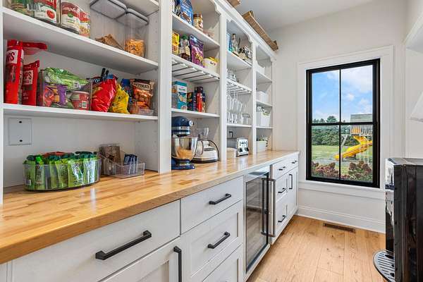 - 1 st Floor Bedroom, Beamed Ceilings, Built-In Features, Open Floorplan, Pantry, Quartz Counters, Walk-In Closet(s), Wet Bar