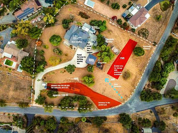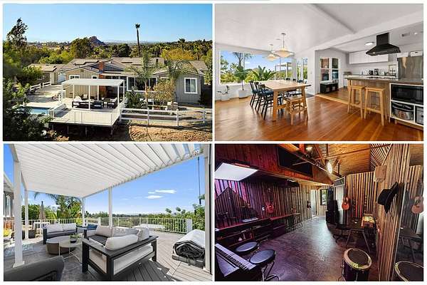 BUY THIS HOME, I'LL BUY YOURS! Seller will consider concessions up to 4% AND a 2/1 rate buydown, reducing the buyer's interest rate by 2% for the first year of their loan and 1% the second year. Welcome to this amazing hilltop home with panoramic VIEWS. This charming and unique historic property has been lovingly upgraded by the seller, an award-winning artist who intended to make it his forever home but now must move for work reasons. With a bright, open floor plan, the views can be enjoyed from throughout the house. Sitting on nearly two acres, and with PAID-OFF SOLAR, the home includes a graded area ideal for a potential ADU and so much potential for further development (see the map included in the photos). This property has to be seen to be appreciated, close to the city but feels like the country, while still getting the ocean breeze, it is a dark sky, an area perfect for stargazing at night. The home boasts an upgraded kitchen with breakfast bar, wood floors, and there is built-in storage space through the home. The large deck area features a shady patio, plenty of space for entertaining guests, and a jetted Endless Pool exercise pool/spa which comes with the property. A Finnish sauna is also included with the property. Up a long driveway, there is plenty of space for guest parking, and the garage space has been converted to a sound-proof recording studio, perfect for media creators or musicians, or could be converted back for parking. El Nido, or the nest, was historically the home of Fallbrook's wild peacock population, and they can still be heard around the area. The property is also wired for fast Fiber Optic internet service not available in most areas.
