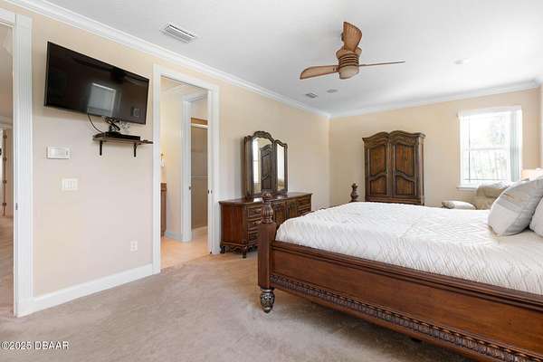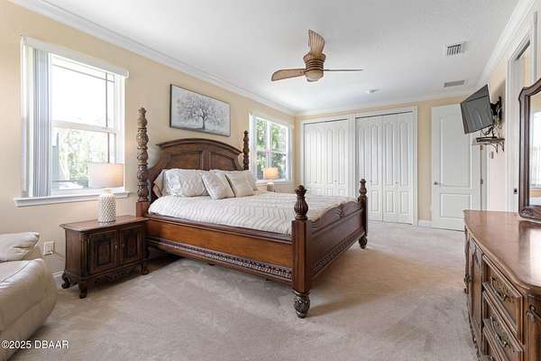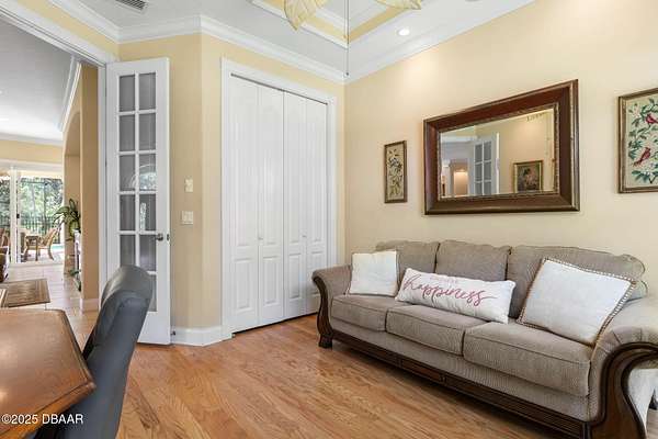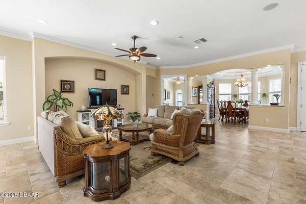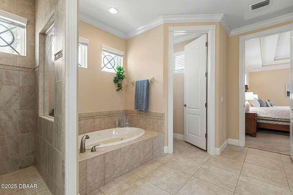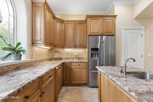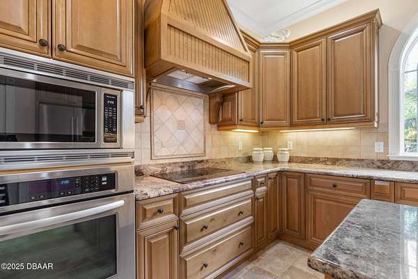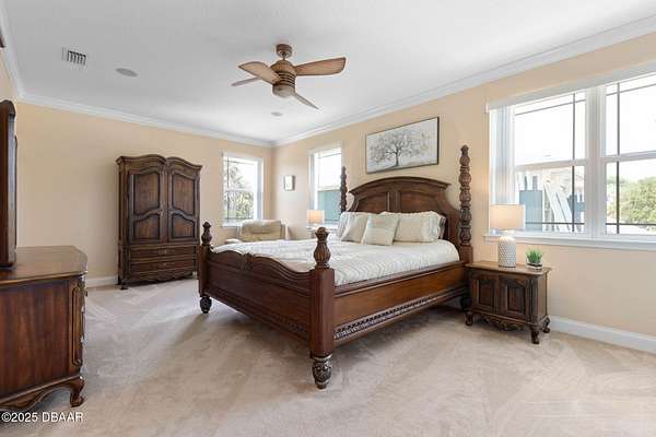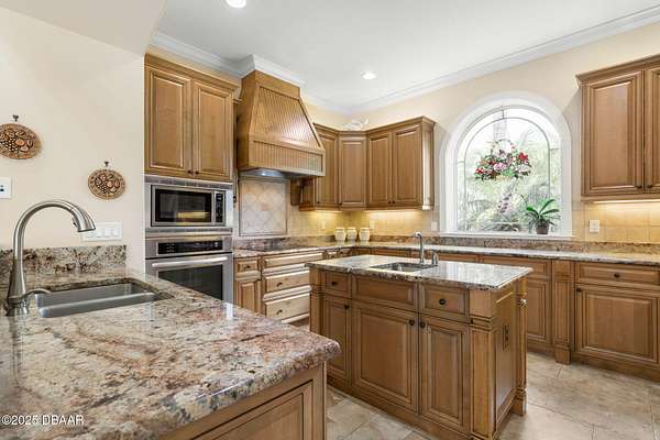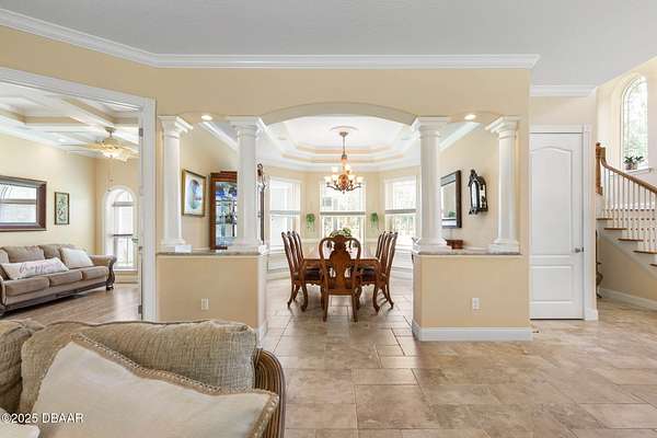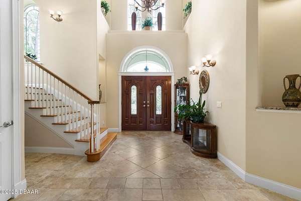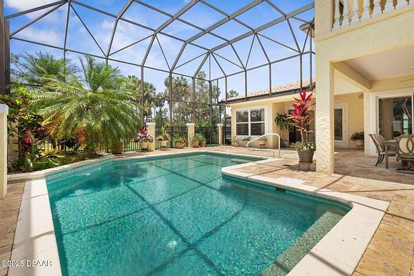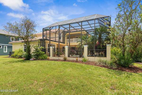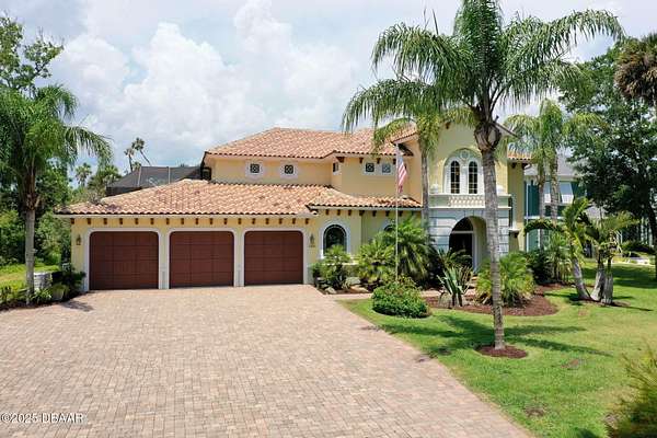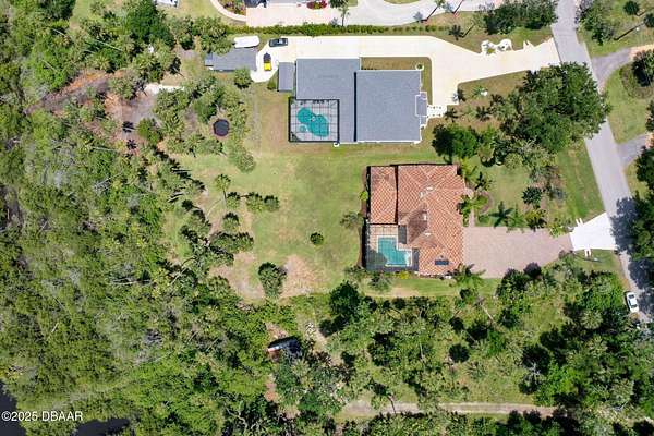 Luxury Estate Living in Flagler Beach. Nearly 2 Acres of Tranquility! Welcome to an exquisite custom-built luxury estate nestled in an exclusive community of Flagler Beach. Situated on 1.74 private acres at the end of a quiet dead-end street, this remarkable home offers over 4,050 square feet of refined living space with 4 bedrooms and 4 full bathrooms. In today's market, building this home on this lot would cost an estimated $1.75M. This makes the property an outstanding opportunity for buyers seeking luxury and value. As you enter through the grand two-story foyer with 20-foot ceilings and a dramatic oak staircase, you're greeted by elegant architectural details including 12-foot-high ceilings, 8-foot solid doors, coffered and tray ceilings, crown molding, arched openings, and stately columns. The chef's kitchen is a culinary masterpiece, complete with granite countertops, 42-inch solid wood cabinetry with under and over cabinet lighting, a walk-in pantry, and premium KitchenAid stainless steel appliances, including a French door refrigerator, separate oven and stovetop with custom matching wood hood vent, a newer dishwasher, and microwave and an island with additional sink. The breakfast nook features a mitered corner window overlooking the custom-designed pool, creating a perfect setting for peaceful mornings. The main floor includes a luxurious primary suite with a walk-in closet and direct access to the pool, a second bedroom currently used as a den or office with French doors and coffered ceilings and wall closet, and a guest-accessible full cabana bath. Flooring in the main living areas is stone, with wood flooring in the downstairs bedrooms and plush carpet upstairs. On the second level, you'll find two primary suites each offering a luxury bathroom with garden tub, walk-in shower, double vanities and separate toilet room along with walk-in closet. One of the suites has French doors leading to the large private balcony. A spacious flex area includes built-in cabinetry, granite countertops, a wine fridge, and French doors opening to the upper deckperfect for use as a home office, media room, or lounge. The outdoor living space is truly a retreat, featuring a solar-heated saltwater pool with a soft chlorinator and EP filter, all within a two-story screened enclosure. The lush tropical landscaping is supported by a full irrigation system and a deep artesian well, ensuring superior water quality without hard water stains. The home sits on a stem wall on a high and dry lot which backs up to a nature preserve. The three-car garage offers sealed floors, ample storage with shelving and overhead hanging systems, and a wide paver driveway. Storm ready with a Generac 26kW whole-house generator installed in 2023 with a transferable warranty, impact windows, a solar panel system for the water heater that also extracts heat from the attic. Additional premium features include a central vacuum system, stereo surround sound throughout the home, abundant recessed lighting, and separate thermostats in each bedroom suite for individual comfort. The HVAC system (2017) and the water filtration system, including charcoal and salt softeners, have been recently upgraded. Just two miles from the beach and local dining, this estate offers the perfect balance of privacy, elegance, and coastal convenience. Don't miss the opportunity to experience this extraordinary propertyschedule your private showing today.