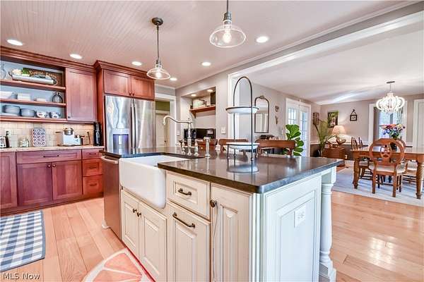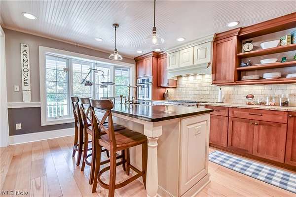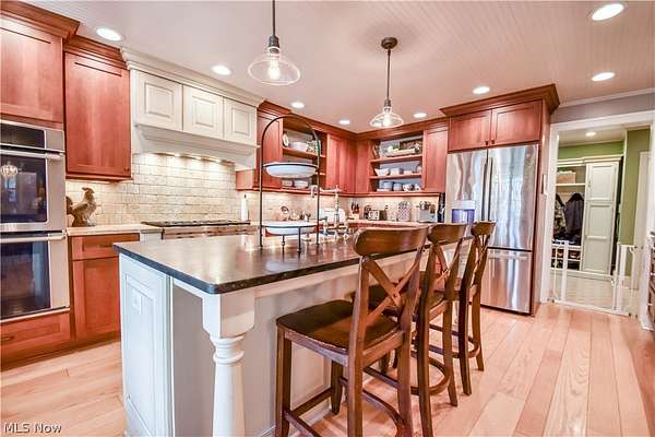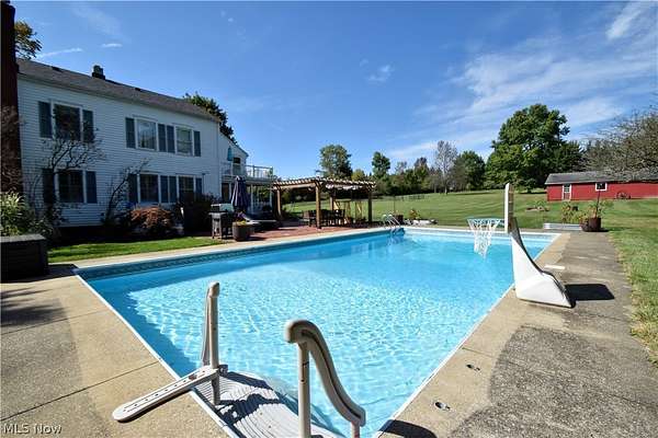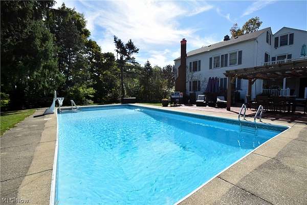 Amazing opportunity to own a truly one of a kind 5 bedroom, 4 acre century home/property, located in Chardon Schools. A truly unique blend of traditional century home charm, mixed with the luxury of modern living. Enjoy the chef's kitchen with top of the line stainless steel appliance. Gas Wolf cook top, granite counters, large kitchen island, cherry kitchen cabinets, travertine backsplash, and walk in pantry. Kitchen opens up to the large dining room where french doors lead you to the back covered porch. Experience your personal oasis on the brick paver patio, in-ground swimming pool, and pergola. The well landscaped property includes a barn, garden area, apple trees, pear trees, and walnut trees. Peace of mind with updated furnace (2023) roof (2023) air conditioner (2025) electric water heater (2019) *agent owned property