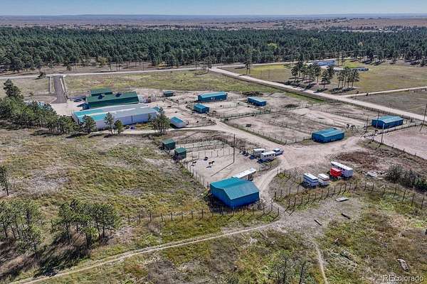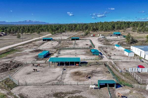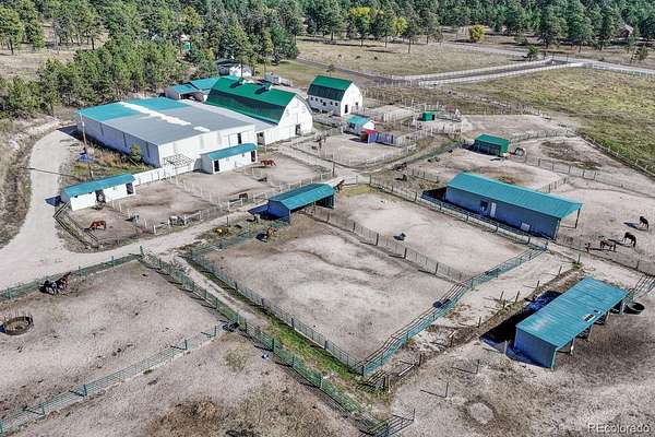 Historic Pine Run Ranch of Black Forest situated on a rare 60 acre scenic park-like property with the perfect mixture of lush green meadows, towering mature ponderosa pines, large spring fed pond with draw that creates an amazing wildlife habitat. There are six homes as well as a professional horse boarding facility featuring two barns w/ one barn at 3,328 square foot w/ 15 indoor stalls, expansive indoor steel arena, 1,649 square foot workshop/tack building, 8 loafing sheds. Substantial and reliable income stream for a savvy investor - 5 of the homes are currently leased to long term tenants, one home is currently run as a successful vacation rental and the equestrian facilities are leased for boarding and training. Limitless potential for income growth w/ the possibility of adding a wedding venue. There are 16 beds and 10 baths spread across the 6 homes. Phenomenal close-in location w/ great access to amenities. The acreage is completely fenced w/ multiple paddocks and pastures. Two of the six homes are charming, turn of the century farmhouses that feature gorgeous architecture, wainscotting, crown molding and pastural settings that transport you back in time. The home that is currently used as a successful vacation rental is lovingly known as the lodge which has amazing style, exposed timber beam vaulted ceilings, rounded doorway, open entertaining spaces, cedar walls, granite counters, newer kitchen and bath w/ an abundance of natural light filled spaces from the clerestory windows. The current owners have invested substantial energy and funds to ensure the ranch is well maintained and updated w/ newer electrical, plumbing, painting, fencing, furnaces, water heaters, fiber optic internet installed, septic system, roofs, appliances, fixtures and well pumps. 5 homes and the barn have their own electric meters. This is a unique and rare opportunity to purchase a large acreage property in Black Forest w/ substantial built-in income. See this property quickly!