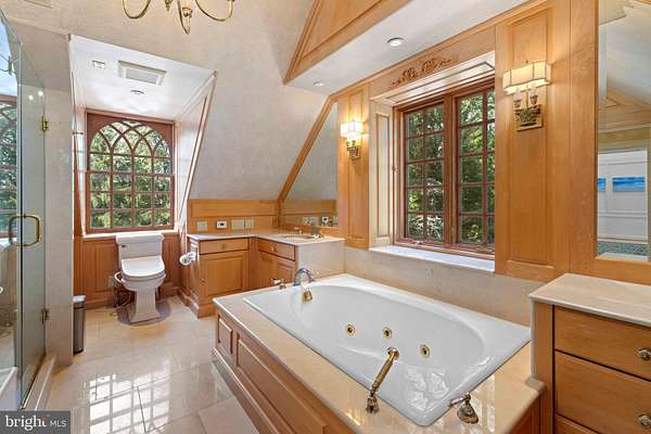 "Second Tamora," originally known as Ederllyn, was built in 1898 by Edward B. Smith of Smith Barney as a private retreat in the heart of Gwynedd Valley. With nearly 3.5 acres of landscaped grounds, this historic stone manor has hosted luminaries such as Princess Grace of Monaco and General Douglas MacArthur, adding to its remarkable provenance. A gated entrance, winding tree-lined drive, circular courtyard, and fountain lead to the stately facade of 18-inch granite walls. Inside, a marble foyer, hand-painted millwork, and 10 distinctive fireplaces set the tone for expansive formal and informal rooms, more than 8 bedrooms, and 7 full plus 2 half baths. Extraordinary details-three staircases, a wine cellar, catering kitchen accessed by original barn doors, and formal gardens-are found throughout. Recent ownership has fortified the estate with substantial investments: a new carport, irrigation and uplighting, extensive landscaping, and advanced water-management systems. Patios and decks were structurally reinforced, the 50-foot outdoor pool and spa underwent a full restoration, and outdated knob-and-tube wiring was removed. Two commercial-grade generators now ensure uninterrupted comfort. Inside, kitchen walls were thoughtfully opened to enhance flow, seamlessly blending historic character with modern livability. Additional amenities include multiple entertaining spaces, and both grand and intimate rooms suited for today's lifestyle. Located in the award-winning Wissahickon School District and close to top private schools, the property offers easy access to regional rail, major highways, golf, tennis, and an abundance of shopping and dining. Both timeless and refreshed, Second Tamora is a legacy estate-strengthened, safeguarded, and prepared for its next steward.