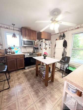Est $1,295/moSituated on 15.89 Acres this home offers old farmhouse charm with land to grow. This property features 3 bedrooms, 1 bathroom, a large utility room, an upstairs sitting area with sunset views, front and back porches, built in dog kennels, electric fencing for horses or other farm animals, and a barn with horse stalls. Property features a small wire fenced yard for smaller animals, a large electric fences area for larger animals, hiking and riding trails, and beautiful views. Property is sold as is.