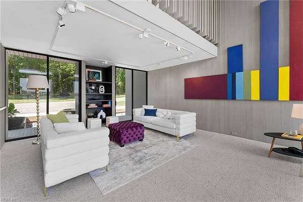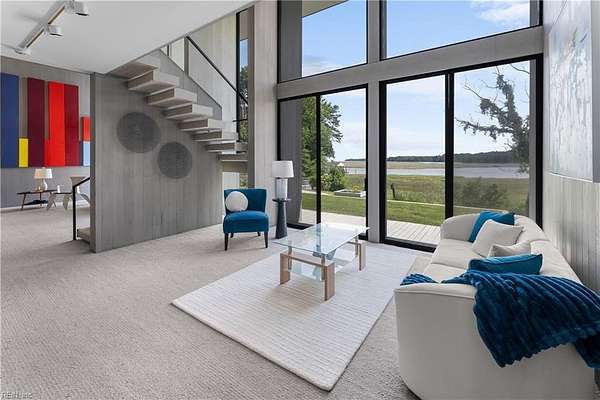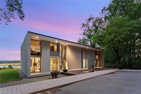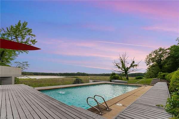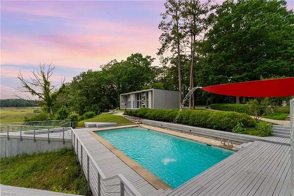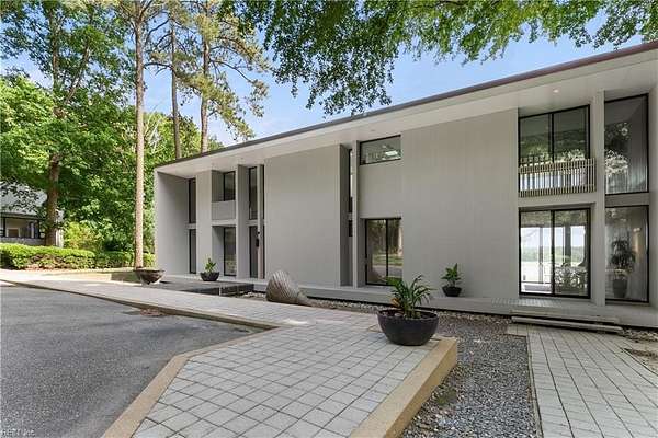 Iconic Contemporary Home with Riverfront Sanctuary, this contemporary home is a serene retreat along the Warwick River. Surrounded by nature, the property offers open spaces and captivating water views. Amenities include a pool with a fountain, a pool house with a kitchenette & dual bathhouse, hot tub, and expansive decking. A private studio workshop, ideal for art, music, or as an Airbnb, detached three-car garage, additional 2 car finished garage in the studio space. The main house spans 3,500 square feet, featuring three bedrooms and three and a half baths, elevator, generator and basement. The studio has a full bath, while the pool house includes two baths and a kitchenette. This architectural gem invites personalization to harmonize art and nature in a tranquil riverside sanctuary. Designed by acclaimed Williamsburg architect Carlton Sturges Abbott and featured in *House Beautiful* this is truly once in a lifetime opportunity to rejuvenate this 1 owner masterpiece.