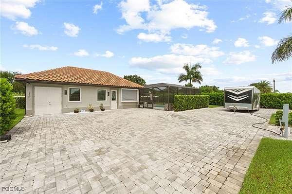 This is GREAT Find! A Super-Sized Motorcoach Lot (95' X 110') with a Coach Cabana and Fabulous POOL. WOW!! The extra large paver pad allows for entertaining space, storage of your stacker trailer, if painted to match your motorcoach, and/or room for all your vehicles/toys. The high-end and impeccably decorated coach cabana will give you that "Luxury Home" feel!! The attention to detail can't be missed; from the impressive appliances, extra window for added light and convenience, PLUS a POOL with a sun shelf, will provide all the creature comforts. This beautifully landscaped RV Lot could be your very own Piece of Paradise. The outstanding property is located within Golden Palms Luxury Motorcoach Resort where you are able to enjoy access to a stunning clubhouse, catering kitchen, outdoor grills, saltwater pool, hot tub, sauna, and gym. There are plenty of activities for everyone and every interest including pickleball, cornhole, fishing pier, kayaks, paddleboats, darts, poker, board games, books, puzzles, 1 acre dog park, and outdoor wood burning firepit. The resort is 54 acres with a 22 acre lake for catch and release fishing. You will be surrounded by nature, yet only a short drive away from restaurants, shopping, parks, golf, airport, Baseball Spring Training Stadiums, and SWFL Beaches. The Resort is a fantastic place for your Class A or Super C Motorcoach for the "Winter Season" or as a "Home" base.