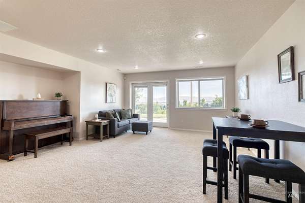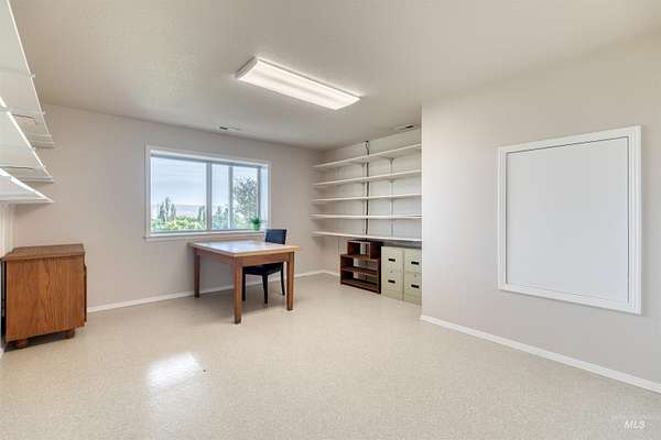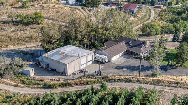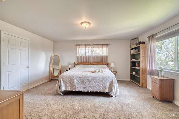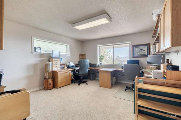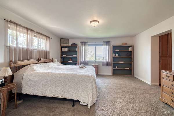 Spacious 4,100 sq. ft. home on 5.85 acres with panoramic views of the Owyhee Mountains, Snake River & Lizard Butte. Main level features a primary suite + office/2nd bedroom (large room, no closet), open kitchen with island, breakfast bar & dining area, large living room with rock fireplace, utility room & wraparound deck. Daylight basement offers a full 2nd living space with 3 bedrooms, 3 baths, kitchen, living room & patio with stunning views. Outbuildings include hay/wood shed, 4 metal sheds & an impressive 55x60 shop with hoist, office, lofts, reloading/storage rooms, bathroom with shower & wood stove. Ideal for multi-generational living, hobbies, or home business. The home was also built with extra durability, featuring 8-inch walls on the main level and 12-inch walls in the basement.