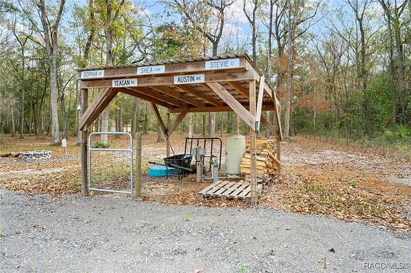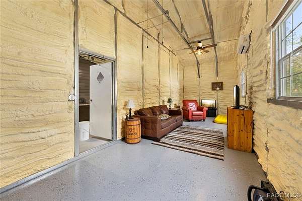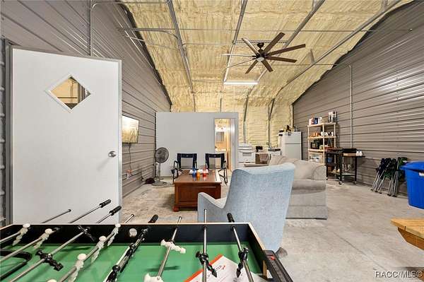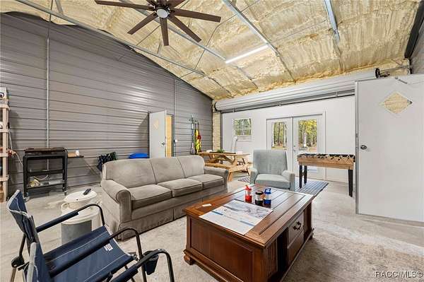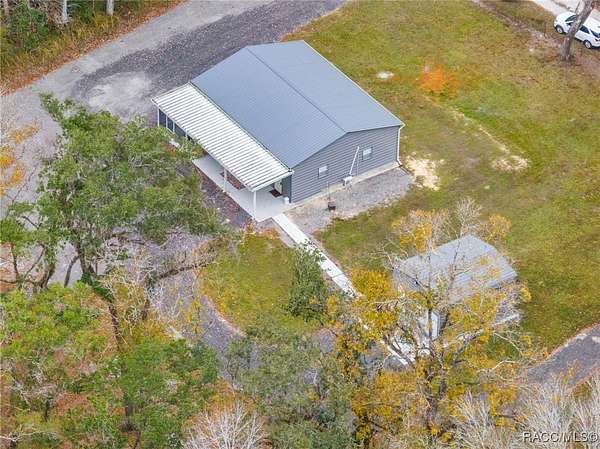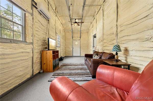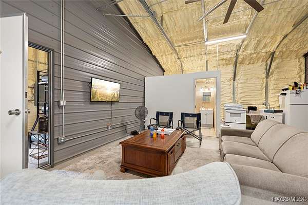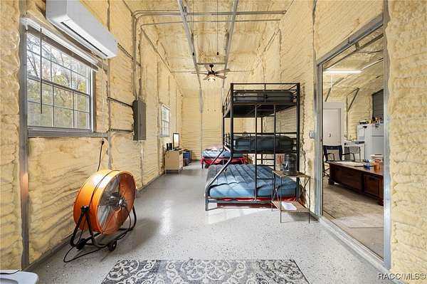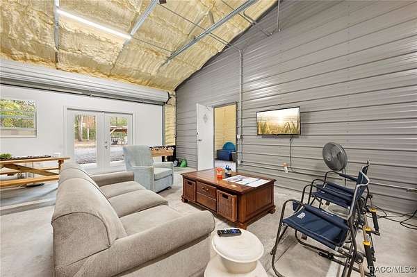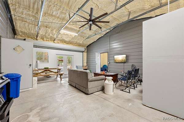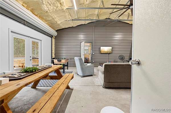 Barndominium on 2 fenced acres in Brooksville! This 2020 barndominium is surrounded by Florida wilderness and built for freedom, privacy, and possibility. Tucked away in a quiet, park-like setting, this versatile property offers the ideal blend of usable space, comfort, and outdoor living. This insulated 1,344 square foot barndominium is currently configured with two oversized bedrooms (approximately 10x30 each), one bathroom, and a great room perfect for gatherings and entertaining. The kitchen area is equipped with a stove and refrigerator, making the barndominium already functional while still offering the ability to personalize your own living space. French doors from the living area open to a 10x40 covered porch, creating a seamless indoor-outdoor connection, with a 10x10 screened-in section of the porch providing a comfortable spot to enjoy the outdoors year-round. A roll-up door also allows the main living space to be completely closed off from the porch when desired. The barndominium features two split AC units, an instant hot water heater, and 200-amp electric service. A tastefully matching 18x20 shed connected by a paved walkway adds valuable storage or workspace and includes its own 60-amp electric service. The property also offers a 50-amp RV hookup, making it ideal for guests, travelers, or multi-use living. Located near the Chassahowitzka, Croom, and Citrus County Wildlife Management Areas, this property offers easy access to hunting, off-roading, Jeep trails, hiking, bird watching, and wildlife exploration. With over 2 acres of fenced land and no HOA, there's ample room for animals, toys, gardens, or future expansion. Whether you're seeking a private retreat, a full-time residence, or a unique investment opportunity, this property delivers space, flexibility, and the laid-back Florida lifestyle buyers are searching for. Schedule your showing for this rare Brooksville find today!