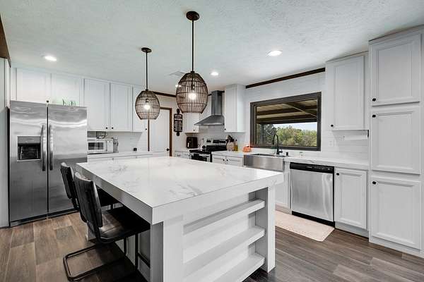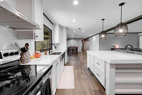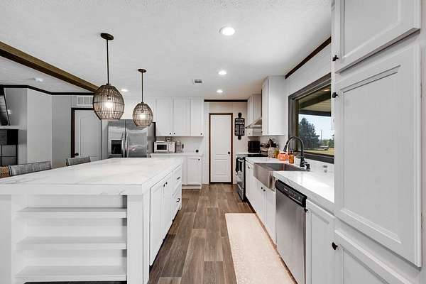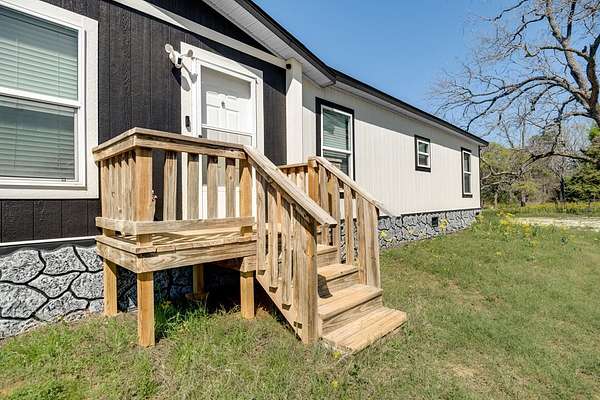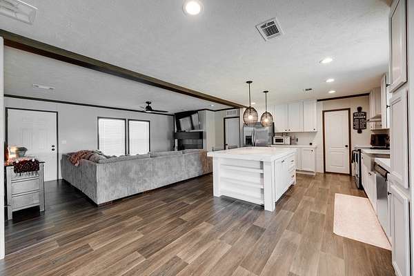 Spacious and inviting, this 4-bedroom, 2-bath mobile home offers 2,016 sq ft of well-designed living space on a peaceful 2-acre tract in the Montalba, TX community. Set in a quiet rural setting, this property blends modern comfort with country charm. Inside, you'll find an open-concept layout featuring a large living area that flows seamlessly into a beautifully updated kitchen. The kitchen boasts ample white cabinetry, a large center island, stainless steel appliances, and stylish pendant lighting, making it ideal for both everyday living and entertaining. The split bedroom floor plan provides privacy, with a generous primary suite offering a relaxing retreat complete with an en-suite bath featuring dual vanities, soaking tub, and separate shower. Three additional bedrooms provide plenty of space for family, guests, or a home office. Outside, the 2-acre lot offers endless possibilities—room for animals, gardening, outdoor gatherings, or simply enjoying the wide-open Texas skies. With plenty of space and a serene setting, this property delivers the best of country living while still being within convenient driving distance to nearby towns.