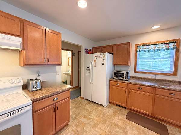 Charming Terrace Home on 6 Acres in Preston Discover your serene retreat in the heart of nature! This stunning 1,740 sq ft home features 3 spacious bedrooms and 4 well-appointed bathrooms, perfect for comfortable living. The inviting living room, complete with a cozy fireplace, seamlessly flows into the open-concept kitchen and dining area--ideal for entertaining. The generous primary suite includes a cozy sitting area, double closets, and a luxury. Enjoy the outdoors with a 12x16 deck and powered awning, plus a large yard with abundant wildlife and nature. Attached 2-car garage, 36x50 pole shed, and 18x21 metal shed provide plenty of storage and workspace. A Generac backup generator adds peace of mind. Located on a quiet corner of a dead-end road, just minutes from Roche A Cri Lake.