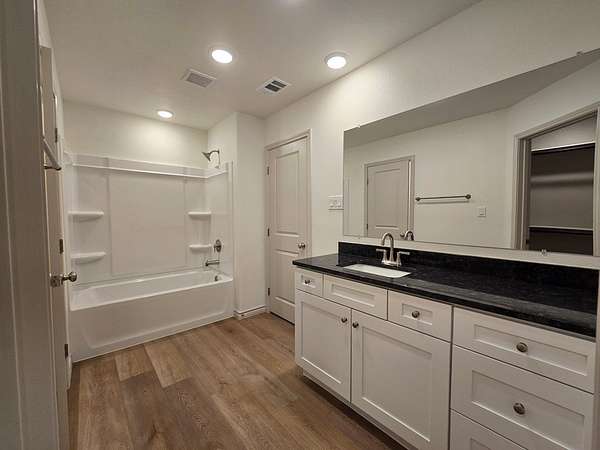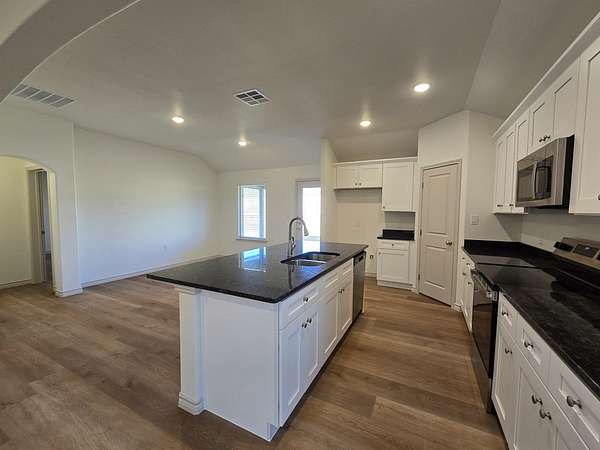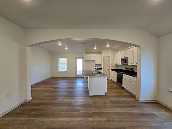 Move in Now - Rest of February Rent-Free! Full of Upgrades! Gorgeous 4BR/2BA corner-lot home with an open floor plan, arched doorways & wood-look tile throughout. Bright living flows to a dreamy kitchen with quartz counters, stainless appliances, island & walk-in pantry. Secluded primary suite offers a huge closet, dual vanity & tub/shower. Upgrades include lush landscaping, sprinkler, keypad entry, ceiling fans, grey cabinets & matte steel fixtures. In a growing neighborhood with a planned new school-don't miss this one!