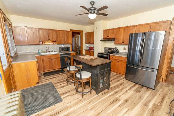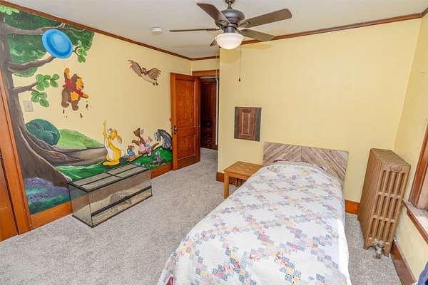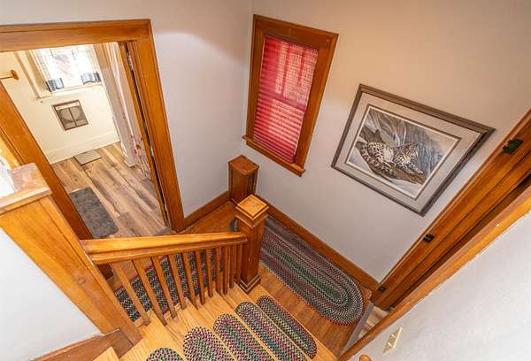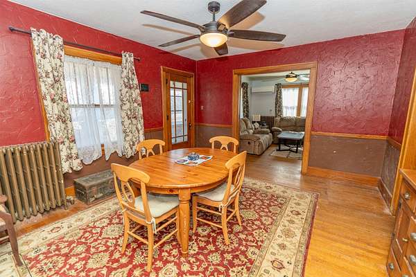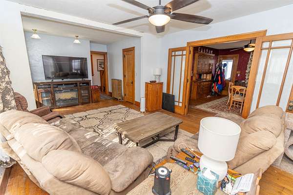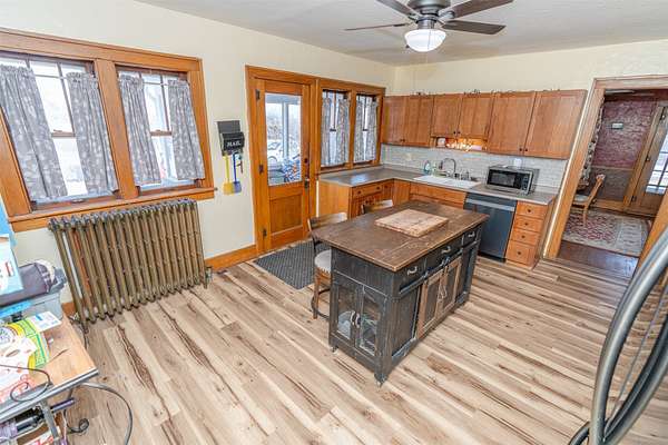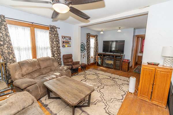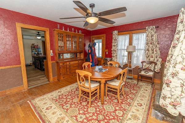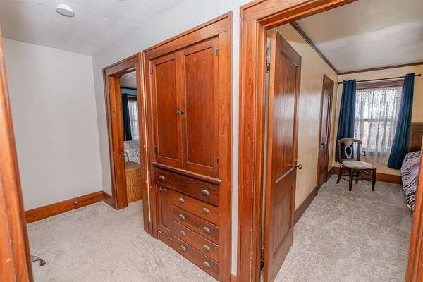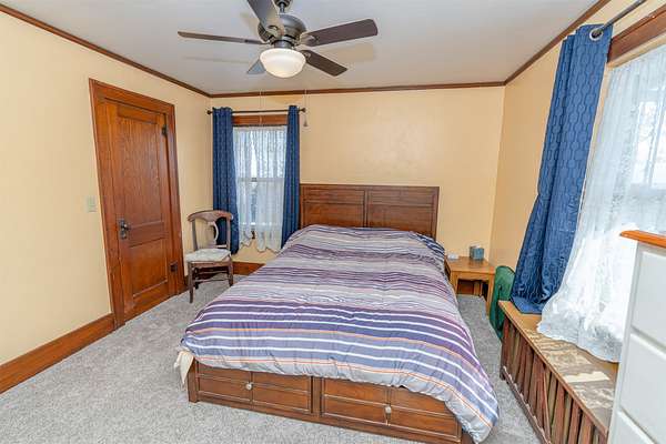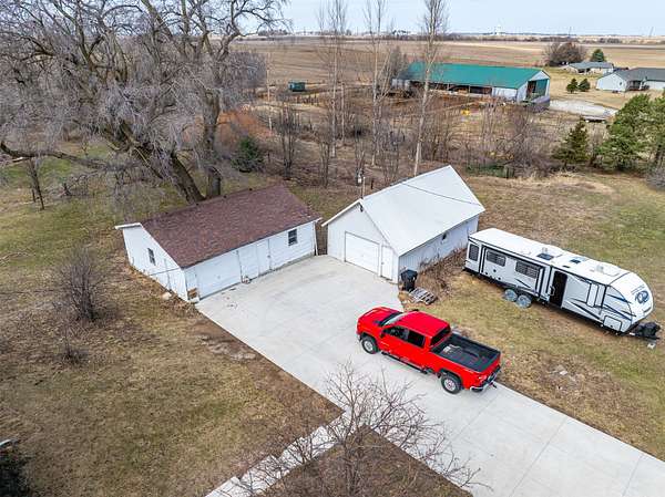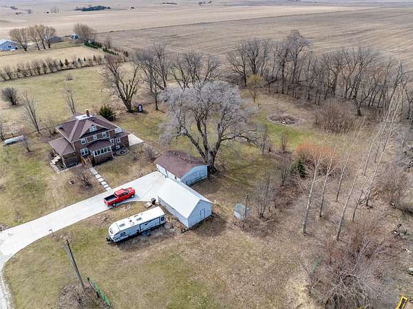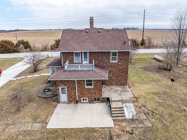 4+ acres on paving with a well-built 2 story brick home, fenced pasture, no covenants and less than 30 minutes to Jordan Creek exit. This 4 BR, 2 BA home has the details of a turn of the century 4 square home you expect, formal dining room w/ built-in hutch, crown moldings and built-in linen closet, remodeled front porch and side porch. But it also has the modern conveniences desired, like main floor laundry, 3/4 bath on main, 4 bedrooms with walk-in closets, gas and electric for kitchen stove, brand new dishwasher w/water sensors, other kitchen appliances in past few years, newer roof, gutters, hot water heater, radon mitigation, most windows have been replaced, ceiling fans, new carpet, ductless air conditioning in the majority of the house(2025). If 2120 sq ft of finish isn't enough room for you, the 3rd story is huge and could be finished nicely. Can you say concrete! The concrete drive is newer, as well as the sidewalk and back patio. Plenty of room for parking vehicles/campers/ ATVs with a 36x32 pole building and original carriage house. This property would be perfect for a hobby farmer, for raising 4H animals, or for the one wanting to be self-sustaining. Located on a solid surface road. The west side of the property offers a park-like setting, Beautiful!