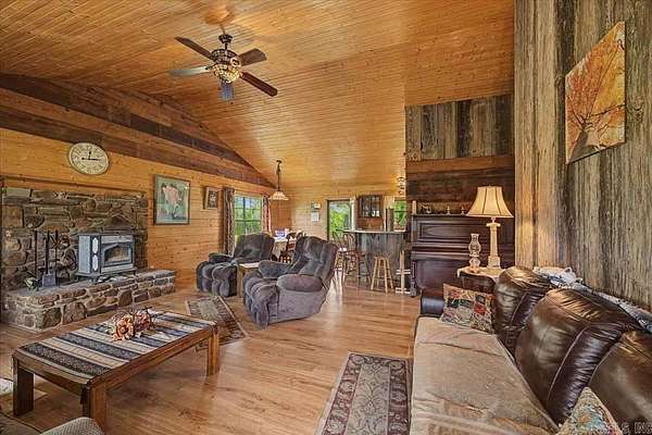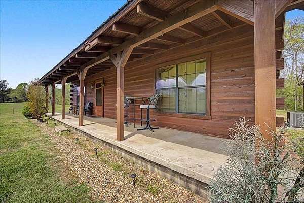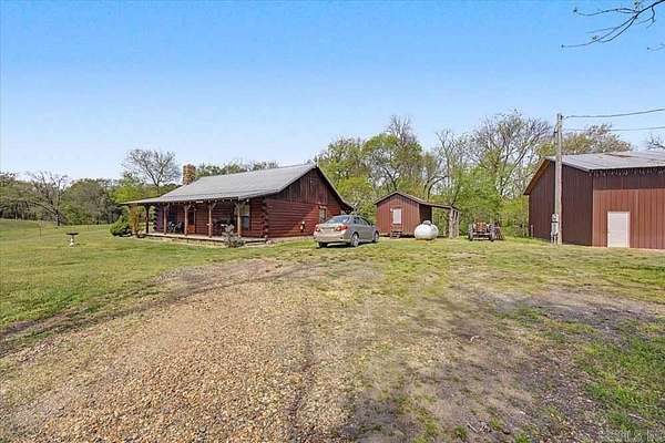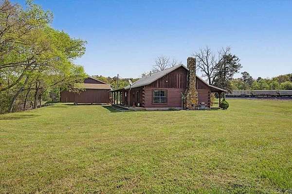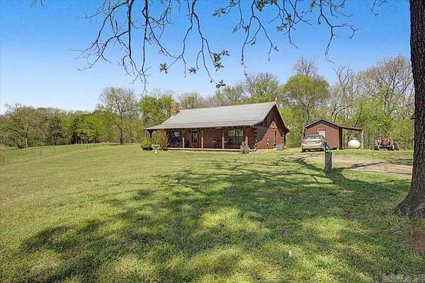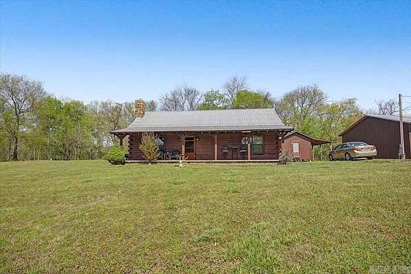 ONE OF A KIND! Rustic Log Cabin home with a covered porch on 25.78 acres near Mena, Arkansas with a woodburnings stove, 1200 square foot barn, a 2800 utility building, a pond, plus three small utility buildings. and a creek running alongside of the back of the property. The land has 882' of highway frontage and is about 1/3 timber, and 2/3's cleared area for agriculture (Pasture and/or crops). It's less than 10 minutes from shopping and dining in Mena and Hackett. This is your opportunity to live in scenic Western Arkansas in a beautiful log cabin, where you can sit back and relax or to raise some cows and horses and enjoy some gardening. The choice is yours, so call the listing agent today to make an appointment to view this property in person.