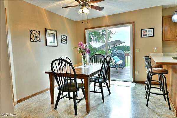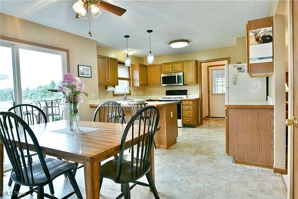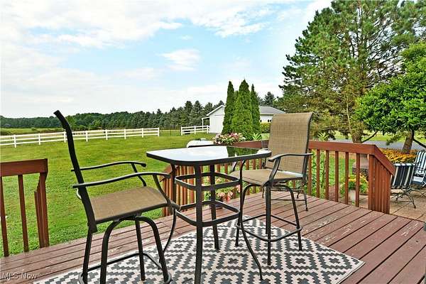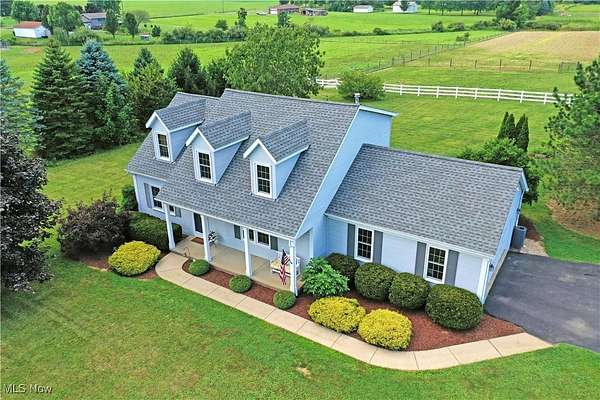 If you are dreaming of recreation and/or country living in a great convenient location this remarkable Ellsworth Twp. property featuring 3-4 bedrooms, 2.5 baths, and a first-floor master suite with a private bath. Set on a scenic stretch of land just half a mile from Western Reserve High School, 7.5 miles to Canfield Center, 5 miles from Route 76, and 10 miles from Lordstown. Nearby water activities include boating, fishing, swimming, camping - You're 5 miles from Berlin Lake - 8 Miles to Lake Milton State Park and 5 miles to the Great Ohio Lake to River Greenway for biking enthusiasts. Tucked far off the road for privacy, the home welcomes you with a circular driveway and manicured landscaping that leads to a charming, pillar-lined front porch. Recent updates include a new garage door (2025), roof (2012), vinyl windows (2018), and an efficient heat pump with propane backup. Enjoy 220 electric service in both the home and the barn-ideal for a workshop or hobby space. Out back, relax on the elevated deck or gather on the lower stone patio -perfect for watching sunsets over the open fields. A 32 by 24 two-stall barn with water and electric, plus approximately 3 acres of turnout pasture, make this property a dream for horse lovers, chickens, or 4H projects. Inside, a sun-filled living room flows into the open kitchen and dining area with bar seating and warm wood cabinetry. A convenient half bath is located near the attached garage. Upstairs, you'll find additional spacious bedrooms and a full bath with cheerful charm. Whether you're ready to homestead, raise animals, or just enjoy peaceful country living, this one checks all the boxes. This peaceful homestead is the perfect blend of country charm and convenience. Call today to schedule your showing!