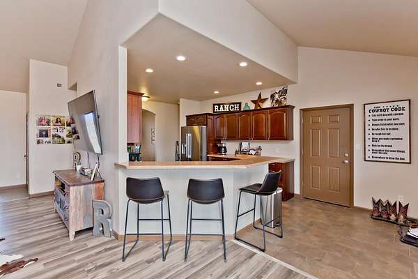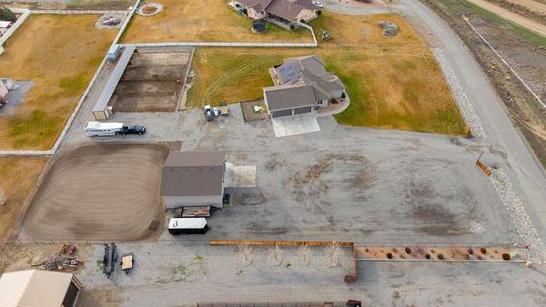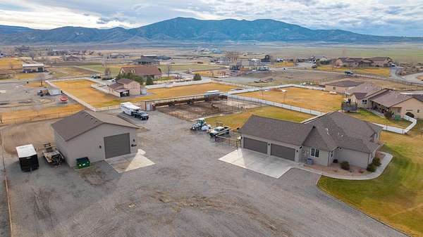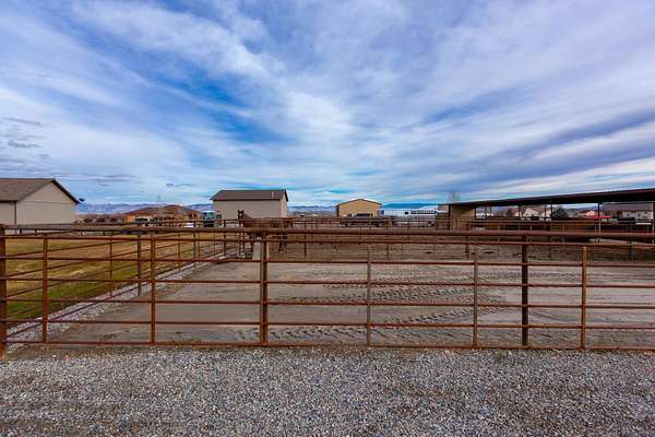 This impeccably completed, 2 acre, horse property is a dream featuring excellent facilities, a beautifully updated home, 4 car garage, and a heated 1600 sqft shop. The property is secured by durable pipe fencing and amenities for your horses include 4 25x70 stalls, automated waterers, and a beneficial shade row, plus 100x100 riding area. The main residence spans 2087 sqft. All new interior and exterior paint, carpet, stove, and refrigerator, are just some of the upgrades. Split bedroom floorplan, central air conditioning, and dual walk-in closets in the primary suite. Enjoy significant energy saving with the owned solar system. Ample parking in the 4 car attached garage as well as impressive 1600 sqft finished and heated shop. With water plumbed in, it offers endless possibilities, also offering a 16ft overhead door. Covered patio and hot tub for relaxation. Views in every direction!