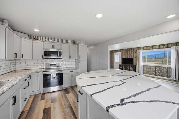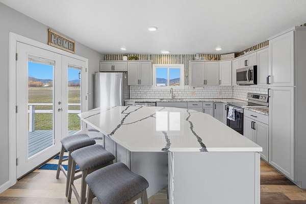 Welcome to 13380 Harpers Bridge Road, a little slice of country heaven just minutes from Missoula. With 8 ACRES, this property offers the space, flexibility, and infrastructure to bring your homesteading dreams to life. The property features a beautifully remodeled 2 bedroom, 1 bathroom home where the heavy lifting has already been done. Inside, you'll find a brand new kitchen and bathroom, updated laminate flooring, fresh paint, and a clean, modern feel that blends comfort with simplicity. It is move in ready while still leaving room to make it your own. Beyond the home, the setup is ideal for a variety of uses. A detached two car garage provides ample storage or workshop space, while the barn area is equipped with its own water and electricity, opening the door for animals, equipment, or future projects. Irrigation infrastructure is already in place, adding even more value for those looking to garden, pasture, or expand agricultural use. Location is where this property really shines. Just up the road, you have easy access to the Clark Fork River at Harpers Bridge, perfect for fishing, floating, or simply unwinding by the water. You are also minutes from outdoor recreation at Blue Mountain Recreation Area with its extensive trail system, and the Deep Creek Shooting Range. All of this while still being a short drive back to the amenities of Missoula. Surrounded by expansive mountain views and big Montana skies, this property offers that hard to find balance of privacy, usability, and proximity to town. If you've been looking for space to spread out, build, grow, or simply enjoy a quieter pace of life, this is a property worth experiencing in person.