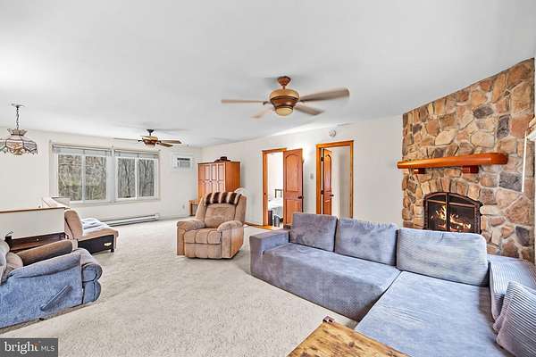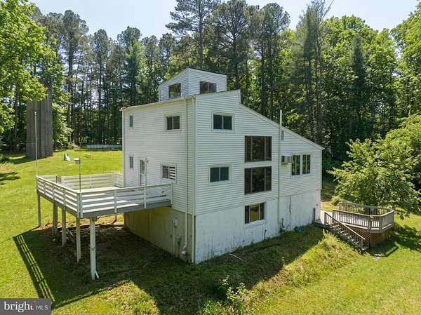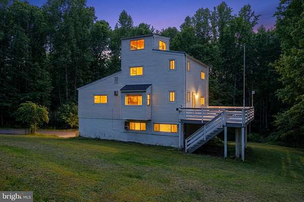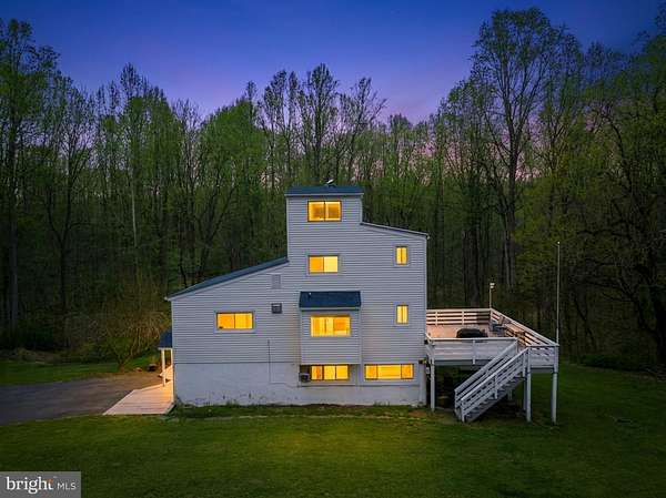 Tucked away on 6.87 private wooded acres, this unique country home offers a rare blend of character and functionality across four finished levels plus an additional fifth level. The home features 3 bedrooms, a flexible bonus or hobby room, and thoughtfully designed living spaces throughout. The kitchen is equipped with multiple workstations and a heated brick floor, while the adjoining dining area highlights illuminated glass shelving set into a striking masonry wall. Upstairs, the spacious family room centers around a stone fireplace, leading to a sunken primary suite with vaulted ceilings and expansive Andersen windows showcasing beautiful views. The primary bath offers a spa-like feel with a wall mounted fireplace, Jacuzzi tub, glass enclosed shower, and private water closet. Two large decks provide ideal spaces to relax or entertain while enjoying the surrounding scenery. The property is rich in natural beauty, featuring a spring fed stream, abundant wildlife, and mature forest. A rare four story detached tower adds unique charm, along with a separate pad site with utilities and its own septic system, perfect for a guest house, workshop, or RV. Recent updates include a new roof (2025), radon system and septic distribution box (2021), electrical panel (2022), and more. Additional highlights include waterproofed basement with potential heated flooring, gas fireplaces with battery backup. Located less than two miles from Caledon State Park and the Potomac River, this property offers a peaceful setting with convenient access to outdoor recreation.
