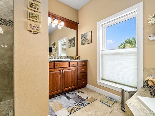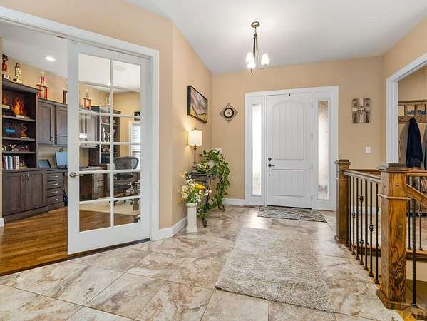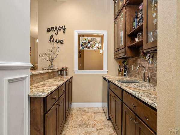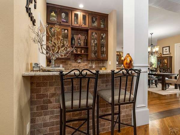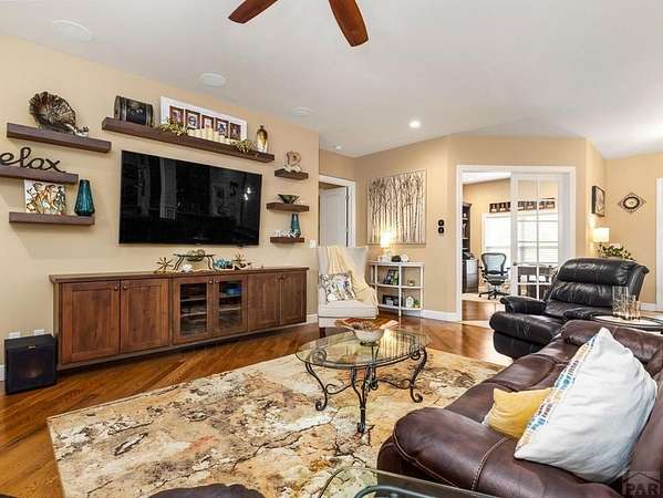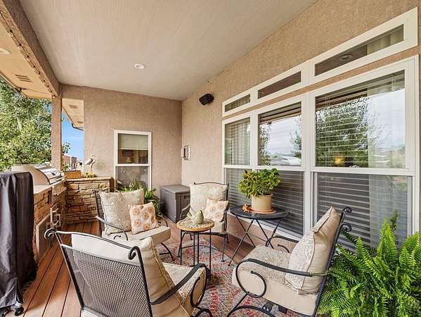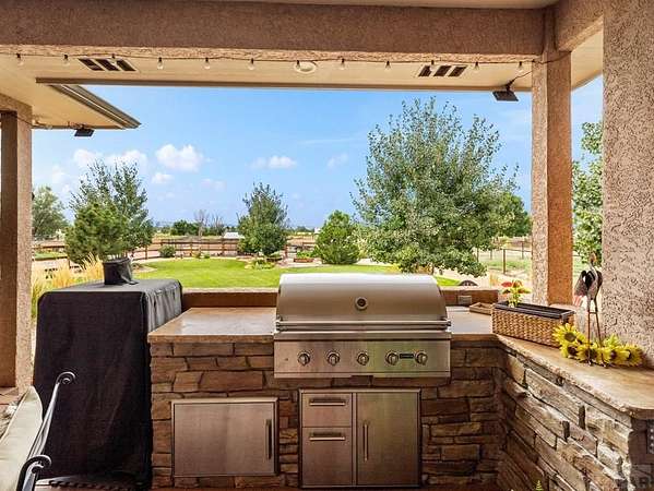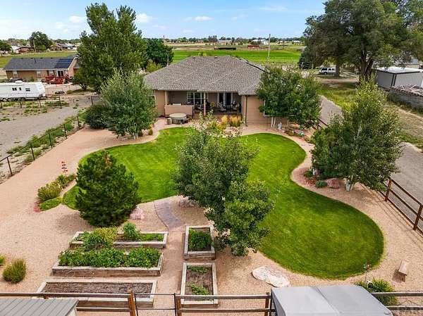 This custom rancher is a country living dream home located in the desirable Mesa area. It is an open concept 3333 square foot main floor living space with 10-foot ceilings and beautiful hardwood floors. Just past the foyer is a wet bar with lit glass cabinets and an office space with custom cabinets. You then enter the great room with a floor to ceiling gas fireplace to accent a family area with a 75" television, surround sound and floating shelves. It transitions into a large dining room with a space for a wine room, coffee bar, or pet corner. The kitchen features upgraded cabinetry, granite countertops, stainless steel appliances, large island, double ovens, and spacious walk-in pantry. The private master suite boasts a fabulous 5-piece master bath and 2 walk in closets. The split bedroom design has two more bedrooms with a connected bath. A lovely sunroom opens to a large, covered deck with an outdoor kitchen, a landscaped, fenced yard with mature trees, scattered perennials, and raised garden beds. The 1700 square foot finished basement includes a 4th bedroom, bath, family room, workout room and an additional room that can be a 5th bedroom. Upgrades include a massive storage area, music system, security system, instant hot water, radon detector, and solar. The home is situated on 2 acres with the back facing west to mountain views and gorgeous sunsets, with a shed, an AGRA well, 2 Bessemer ditch water shares, an Alfalfa field with irrigation pipes and gates.