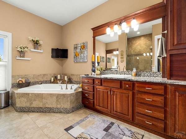 - Cable TV, Ceiling Fan(s), Granite Counters, Soaking Tub, Sound System, Walk-In Closet(s), Walk-In Shower, Wet Bar