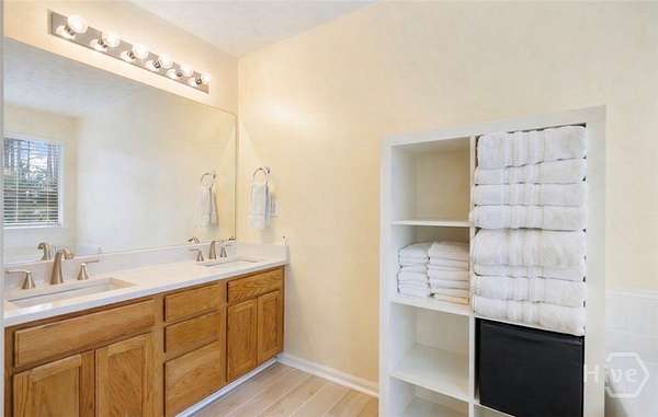 - Breakfast Area, Ceiling Fan(s), Country Kitchen, Double Vanity, Entrance Foyer, Fireplace, Garden Tub/Roman Tub, High Ceilings, Primary Suite, Pull Down Attic Stairs, Separate Shower, Split Bedrooms, Tray Ceiling(s), Vaulted Ceiling(s)