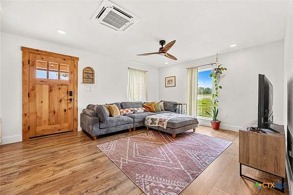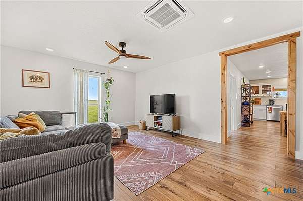 Discover the beauty of refined country living on 10+ acres in Troy. This fully renovated 2-bedroom, 1-bath home offers 1,015 square feet of thoughtfully designed space, perfectly positioned to capture breathtaking sunrises and sunsets across wide open skies. From the inviting front deck to the covered back porch, every detail is designed to embrace the outdoors and the peaceful rhythm of ranch-style living. Inside, the home showcases cohesive flooring throughout, recessed lighting, ceiling fans, and warm natural woodwork that adds character and charm. French doors enhance the flow of the home, while expansive natural light creates an inviting, airy atmosphere. The kitchen is both stylish and functional, featuring Whirlpool stainless steel appliances, Quartz counters with ample workspace, and a seamless connection to the main living areas; ideal for everyday living or hosting guests. Step outside and experience the true value of this property, over 10 acres of open land offering endless possibilities, whether you envision a private retreat, hobby ranch, or simply space to roam and unwind. Enjoy the quiet, serene lifestyle of the countryside with room to grow and create your vision. Conveniently located with easy access to I-35 and within reach of Austin and Waco, this property offers the perfect balance of privacy and accessibility.