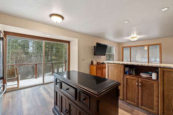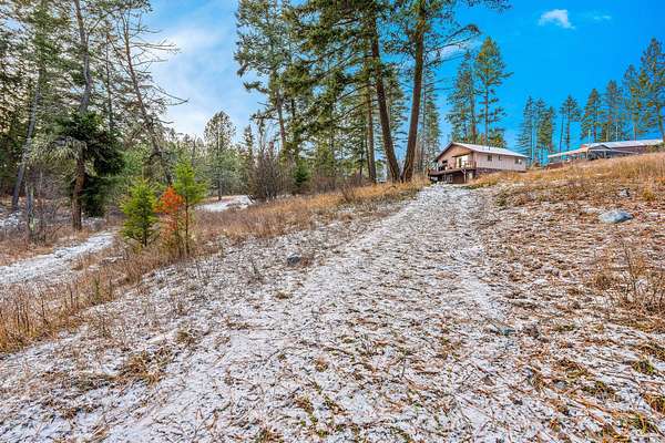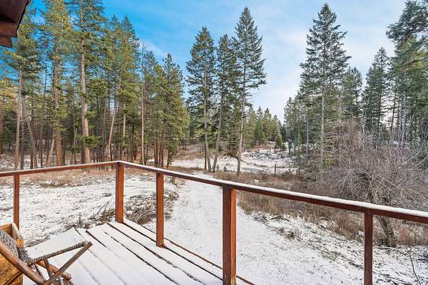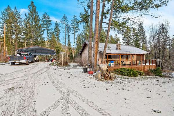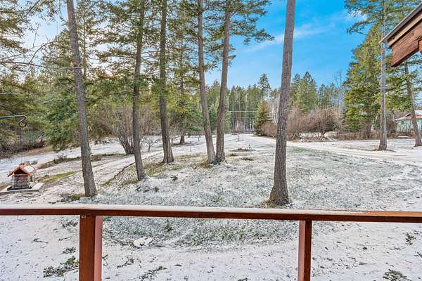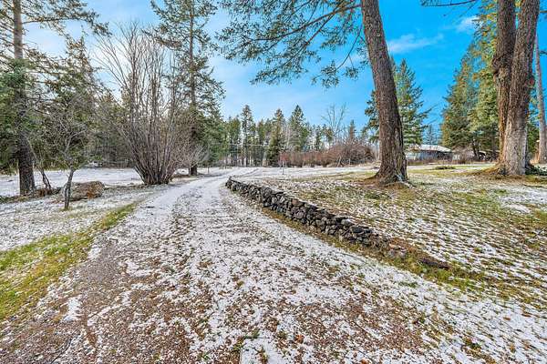 Just south of Bigfork on 4.71 acres, this inviting ranch-style home offers a daylight, walk-out lower level and a peaceful, private setting. The home received thoughtful updates in 2022, including new flooring, stainless steel appliances, a gas heating stove, and updates to both the kitchen and bathroom. Enjoy outdoor living from the front deck or the back deck off the kitchen, perfect for soaking in the morning sun. The main level features the primary bedroom and one guest bedroom, offering convenient main-floor living. The lower level includes a spacious entertainment room, a third bedroom, and an room with safe door to store things. There is no zoning. Outside, property is enhanced by a seasonal pond and several fruit trees, adding to the natural charm. With easy year-round access, this property is just minutes from Bigfork and two close by Flathead Lake accesses, blending privacy with convenience. Shared driveway easement and light CC&R's will be placed on the property. Shared well agreement will also be recorded prior to closing. Subject to final survey recording. Proposed survey is in documents. Smaller home and shop will be on separate property.