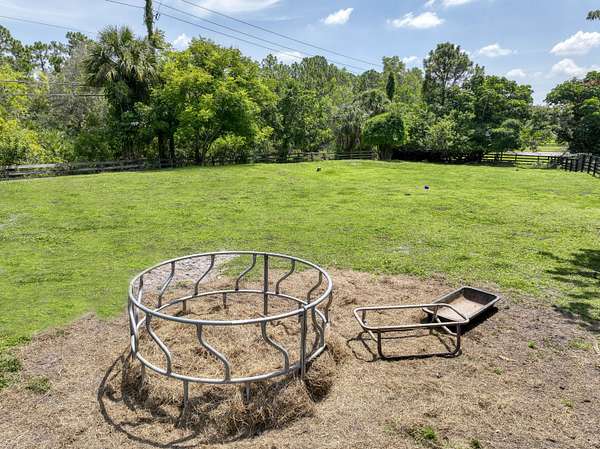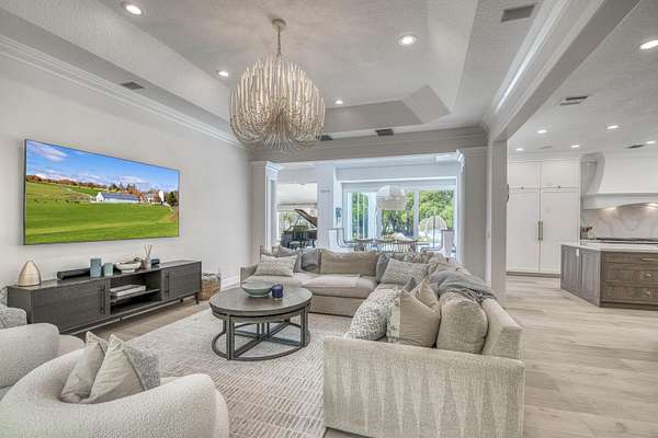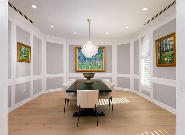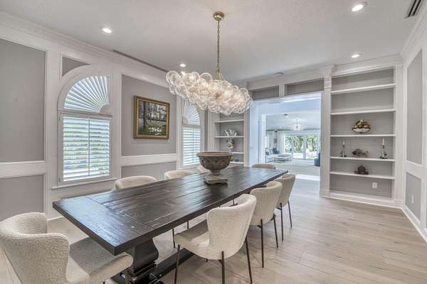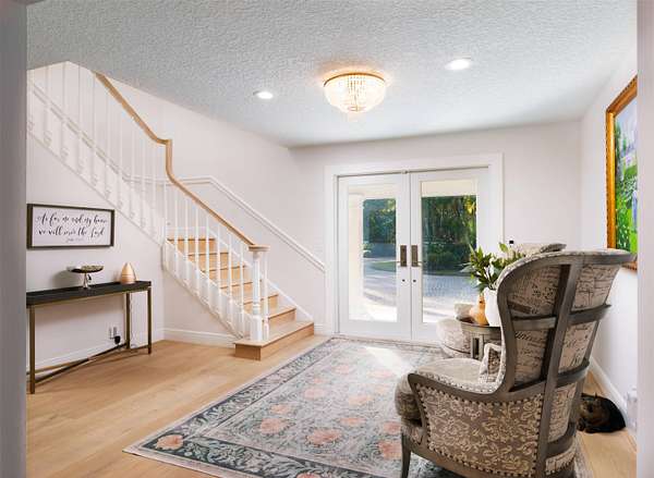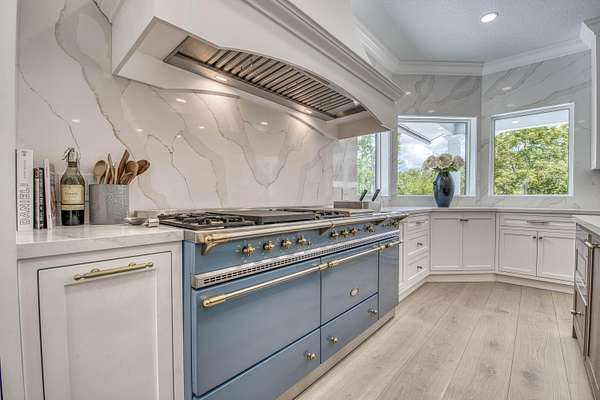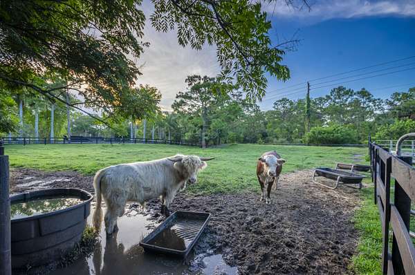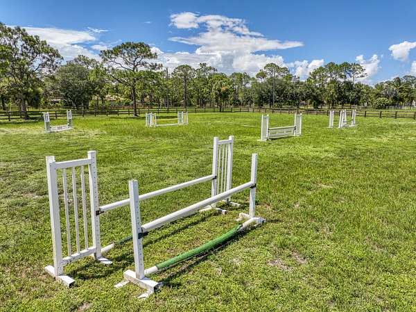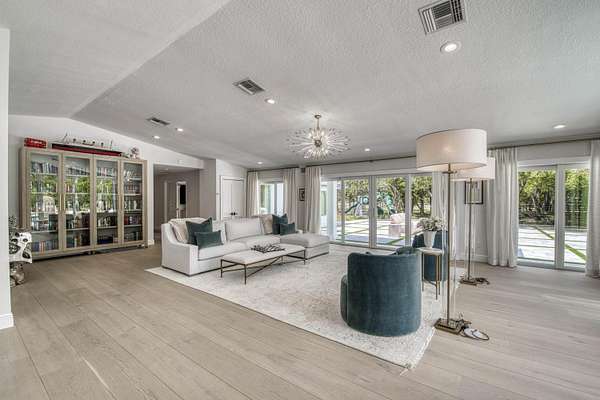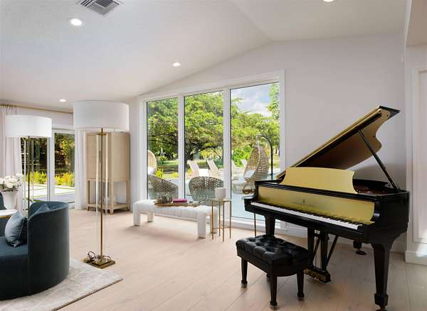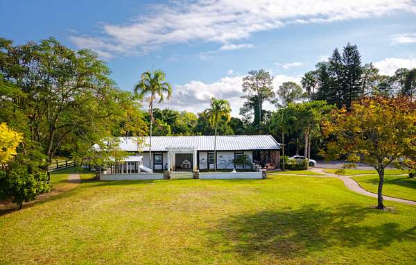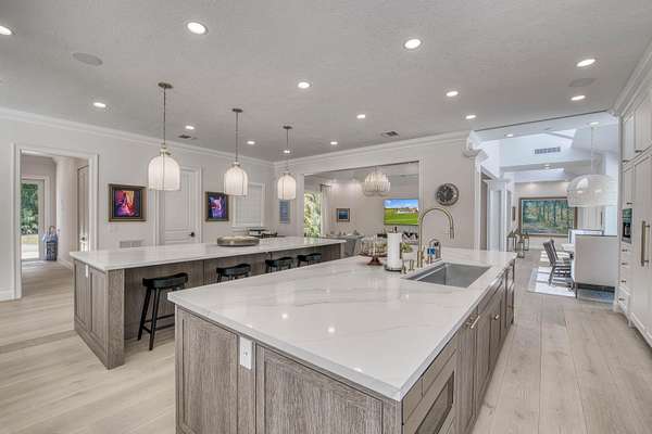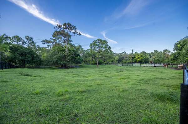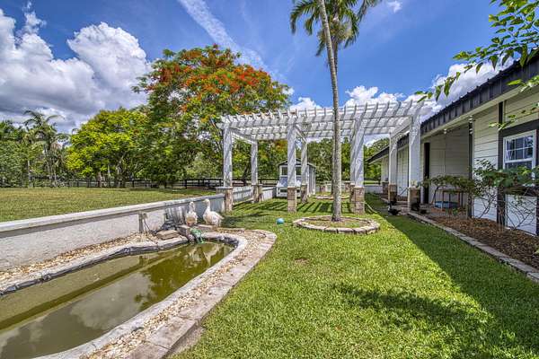 Escape to your private South Florida sanctuary, a modern French Country estate that redefines refined living on over five acres of lush, equestrian land. Here, tranquility, craftsmanship, and contemporary luxury coexist in perfect balance. Every inch of this estate has been thoughtfully redesigned, blending timeless European charm with the ease of contemporary luxury living. From the moment you arrive along the long private drive, the home reveals its elegance through vaulted, skylit ceilings, walls of glass, and wide-plank European oak flooring that flood each space with natural light. The heart of the home is the show-stopping chef's kitchen, anchored by dual oversized islands, quartz countertops, and ceiling-height custom cabinetry. A statement wood hood crowns the professional