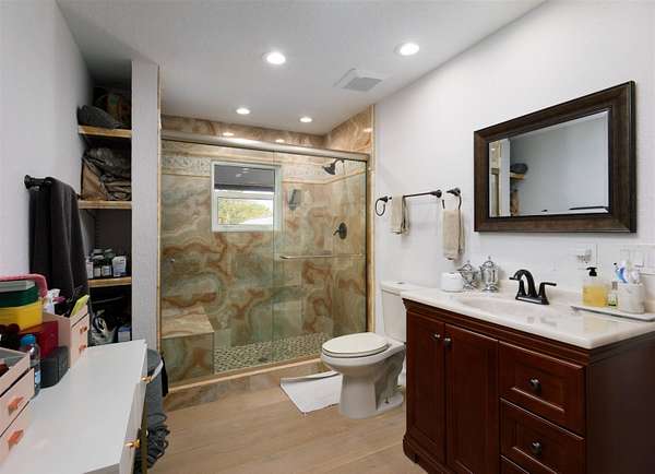 - Built-In Shelves, Decorative Fireplace, Entry Level Lvng Area, Foyer, French Door, Kitchen Island, Pantry, Sky Light(s), Split Bedroom, Volume Ceiling, Walk-In Closet