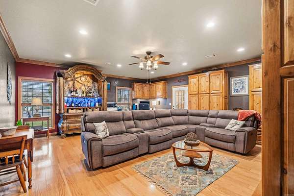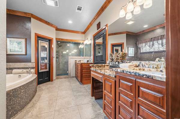 AN EXCEPTIONAL CUSTOM DESIGN & BUILD by a master craftsman builder (all 2x6 exterior walls) for his own daughter, 4 BEDROOMS, 3 FULL BATHS + 1/2 bath on a very PRIVATE 5.86 AC. hilltop with stunning views in all directions! This one is loaded!! LOCATION is perfect for commuting to Benton/Bryant/HS areas...The CUSTOM MILLWORK is magazine award worthy! Spacious great room w/gas fireplace for enjoyable gatherings. Plenty of gorgeous storage & built-in's everywhere you look..and don't miss the kitchen cabinetry, granite counter, SS appliances, built in ovens, brkf bar & lg walk-in pantry. Sequestered PRIMARY SUITE w/private exit to covered outdoor living plus a spa like oasis ensuite complete with garden tub & walk in STEAM SHOWER! 2nd living area (multi use), glassed in breezeway connects to 3 car garage. 22x30 METAL BUILDING w/attached lean-to shed large enough for a big boat! Lg covered back porch plus stone benches & firepit. Addt'l 25x30 concrete slab..ready for whatever you want to build! FULL HOUSE GENERATOR! 50 AMP for motorhome. SO MANY GREAT FEATURES!! COME SEE THIS ONE TODAY!