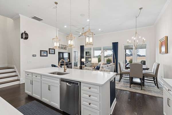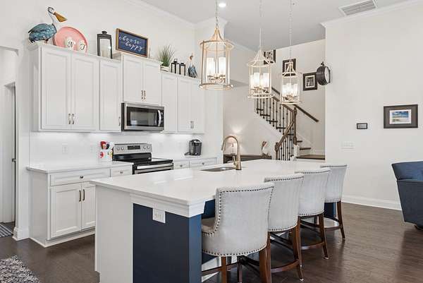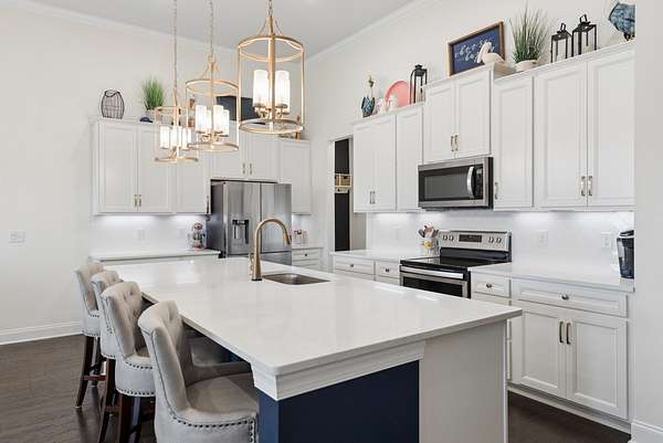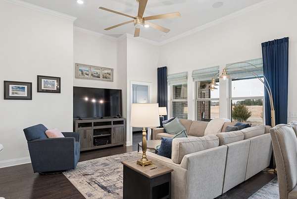 Built as a model home replica, it features $66K in upgrades, including crown molding throughout, quartz countertops, under-cabinet lighting, updated fixtures and paint, and surround sound speakers inside and on the patio. A two-car garage and highly desirable Foxland Harbor location complete the package.