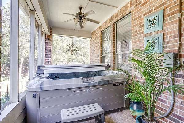 Boasting four beautifully appointed bedrooms, including a secluded master retreat and a private guest suite, the layout effortlessly balances intimacy with grandeur. Three distinctive wings offer privacy and versatility, and complemented by three full baths featuring refined finishes. The gourmet kitchen is a chef’s dream, featuring pristine granite countertops, stainless steel appliances, and a custom coffee bar, large farmhouse sink, seamlessly flowing into the living and family rooms for effortless entertaining. Formal dining and a screened indoor patio with spa provide adaptable spaces for elegant soirées or cozy gatherings.