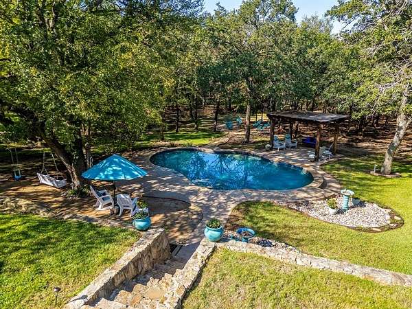 From Rick Williamson and Highway 180, Going West on 180, make a U-turn onto Old Mineral Wells Highway Rd, go East on 180 and make a right onto Saddle Club Rd, take a left onto Forest Creek and home is on the right.