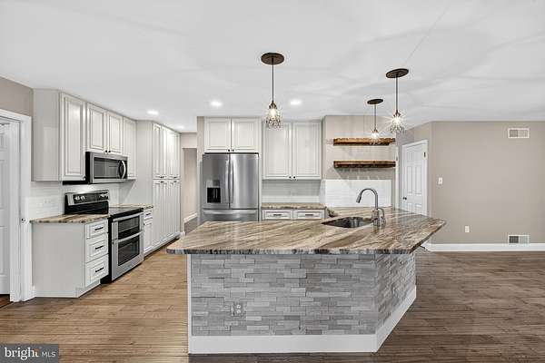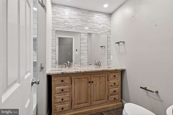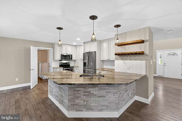 Featuring a spacious MAIN-FLOOR IN-LAW SUITE with its own private entrance, this meticulously renovated Colonial in the highly desired Avon Grove School District offers rare flexibility for multi-generational living or rental income potential. Set on 1.7 acres of open, usable land that gives way to a lush, wooded sanctuary acres in the community of Walnut Glen (with no HOA), this 5 bedroom, 4 bath property provides residents with the perfect balance of space, privacy, and a prime location, while a geothermal energy system maintains low monthly utility costs. Whether you're hosting friends on the patio, relaxing indoors, or exploring everything Southern Chester County has to offer, this home has it all. On the main level, the self-contained suite that is not included in the total square footage, includes two bedrooms (or one bedroom and an office), a full kitchen, living room, and a remodeled bathroom with heated floors. Significant updates since 2018 are detailed in the "upgrades list" under more documents, and highlights of the main home include a renovated gourmet kitchen, new hardwood floors throughout the first floor, a fully upgraded primary suite with vaulted ceilings and a spa-like bathroom featuring a 5' x 5' shower and heated floors. The finished walk-out basement (2020) provides additional living space with a kitchenette, half bath, and pellet stove, opening to a patio with granite countertops and a propane connection for outdoor cooking. The wooded backyard is a quiet retreat, complete with custom bridges leading to a pergola and firepit. Practical features abound, including a whole-house generator, new replacement windows, brand-new carpeting, and a 2023 hall bath renovation with double sinks and heated flooring. An extended wrap-around driveway leads to the oversized two-car garage, where extensive overhead storage provides ample room for organization. This final touch completes a well-maintained property that carefully balances contemporary updates with the peace and quiet of its private, wooded surroundings. This home far exceeds the standard definition of "move-in ready."