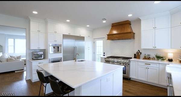 Custom Luxury Home set on huge, beautiful lot with scenic view, neighboring preserved parklands, and approvals to build Horse Barns/Arena. Special Features abound. Spacious Covered Porch w/ built-in BBQ, stone planter, extended Patio area & firepit w/ seating space to enjoy outdoors at leisure. Porch overlooks large fenced-in yard. Wonderful Heart-of-Home Kitchen- farmhouse sink, quartz counters, oversized center island w/ 2nd sink, full side-by-side fridge & freezer, 6-burner plus griddle stove, built-in coffee maker & microwave, stylish hood, pantry & eat-in area. Family Rm & Dining Rm both incl stone-front fireplaces. Office/den features 3rd fireplace. Sunroom w/ huge windows is amazing! Relax & enjoy beauty of almost 10-acre property. Master Suite w/ double-door entry; spacious bedroom; 2 Walk-in Closet; & Master Bath blends style & practicality: dual vanities, private lavatory & luxury shower w/ bench & niche. 2 additional upstairs bedrms, 1 of which offers bonus Sitting Rm. Tons of great features like 2nd Covered Porch; back staircase, walk-up stairs to attic, & extra storage over garage. Finished Basement w/ extra Bedrm, full bathroom, Rec Rm, & Exercise Rm. Transferrable New Home Warranty. Additional approvals were obtained to build 120 x 70 HORSE Riding arena separate HORSE/ Animal Barn 40 x 60, 2-stall horse barn w/ Storage & extended extra parking, on bucolic property. Engineering plans and rendering show potential for future pool location. Rare Opportunity!