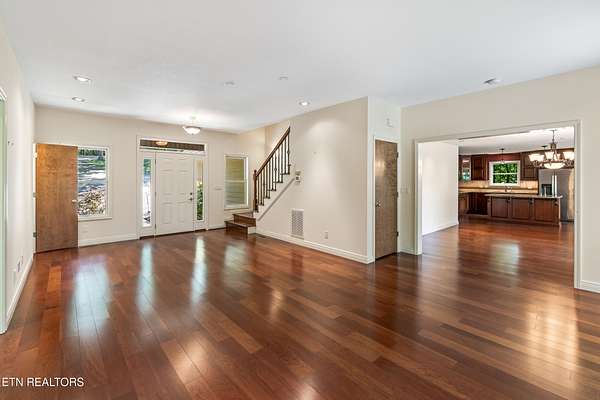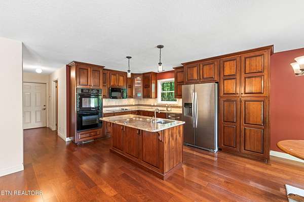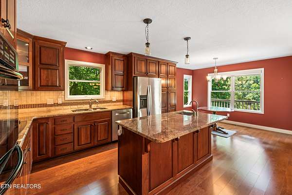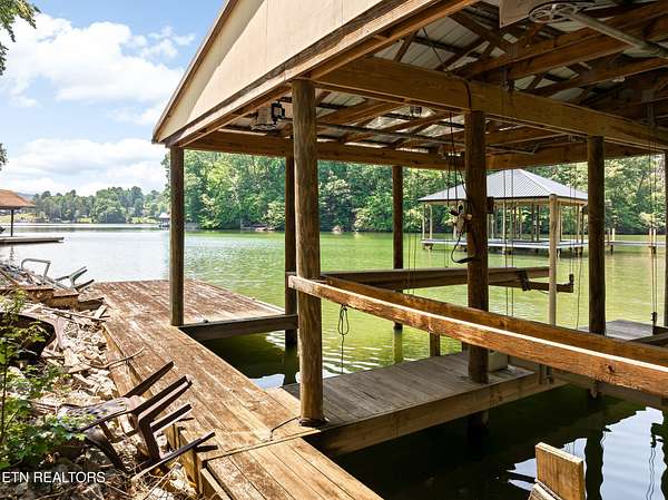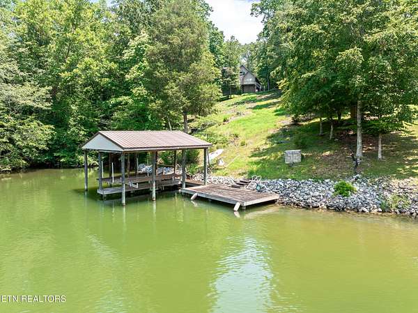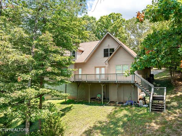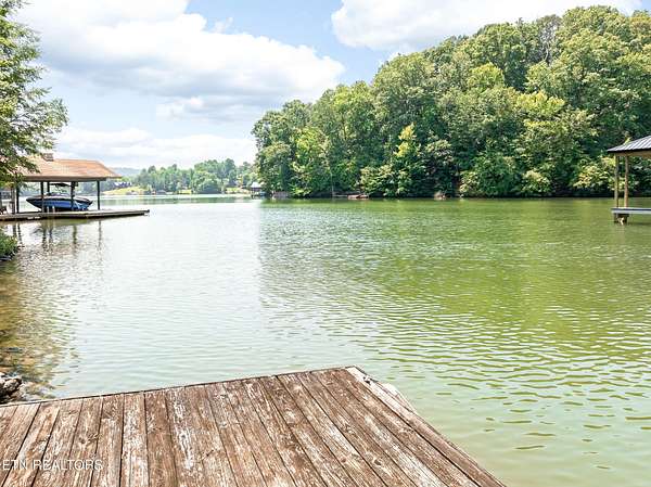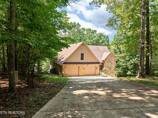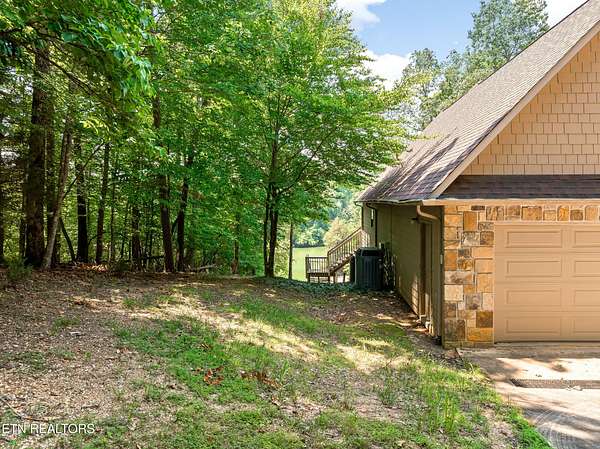 Location, location, location! This serene 3-Bedroom, 4.5-Bath Lake Home is the epitome of tranquil waterfront living. Nestled on a small cove, this cozy setting is a great spot to fish, swim and dock your boat, while the home itself, perched on gently sloping hillside overlooking Watts Bar Lake, yields an impressive 3,400 sq ft of living space with basement. The 3.7-acre lot provides unmatched privacy with gated drive leading to a 2-car garage on the main level and single basement-level garage that make great space for the mechanic, hobbyist, or anyone looking for secure parking. Graciously surrounded by tall, majestic trees that deliver shade, beauty and an enhanced air of solitude, the home reveals itself with exterior facade of Ashler cut fieldstone and hardy board with asphalt roof. Combining peaceful lake views with versatile living space, this exceptional residence offers elegance, functionality, and a warm, welcoming atmosphere. The open-style floor plan is ideal for both entertaining and everyday family living, with abundant natural light and thoughtful design throughout. A large living room centered by a warm mantled fireplace carves out a space to unwind while enjoying the scenic vistas. The fully equipped kitchen boasts modern appliances including double ovens, custom cabinetry brought to the ceiling and finished with complementing trim, and a center island with secondary sink, making meal preparation a breeze. Host with ease in the large dining space adorned with corner built-ins or savor an intimate aesthetic in the charming breakfast nook with direct access to the rear deck. Whether sipping your morning coffee or hosting guests for a BBQ, you will be captivated by the natural beauty that is right outside your door. With plenty of area for outdoor living, you can enjoy direct access to the lake with private boat dock. When it comes to personal space, the many bedrooms offer a generous scale, with the primary bedroom outfitted with walk-in closet and ensuite bath boasting double sinks, soaker tub and separate tiled shower with built-in bench. Perks and quality features like the InstaHot hot water dispenser, Marvin windows, solid wood interior doors, three attic vent fans, six ceiling fans and a main floor electronic dust filter (part of circulating system), all add to this thoughtfully outfitted retreat to assure comfortable, easy living. The unfinished basement of approximately 2800 sq ft is ready to be finished and customized to expand your everyday living, or it makes for plentiful storage now with space for a workshop and access to the 488 sq ft single garage. The 2-car garage on the main level of 672 sq ft really proves just how much room this home has to offer throughout. Whether you're relaxing indoors or entertaining outside, this home checks every box. Tour Today!! Buyer to verify all information.