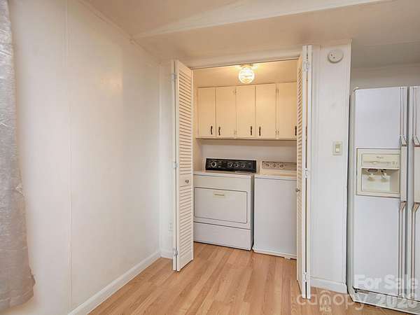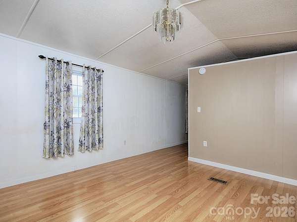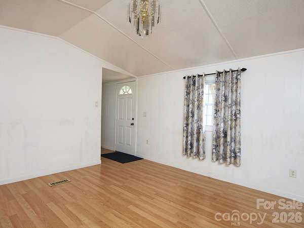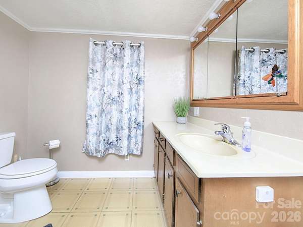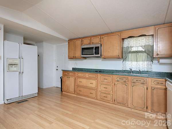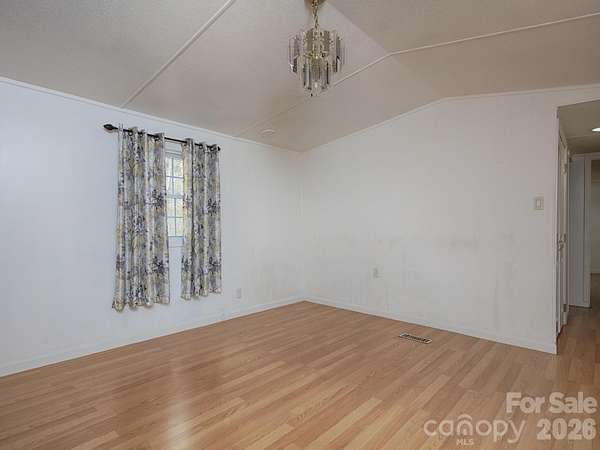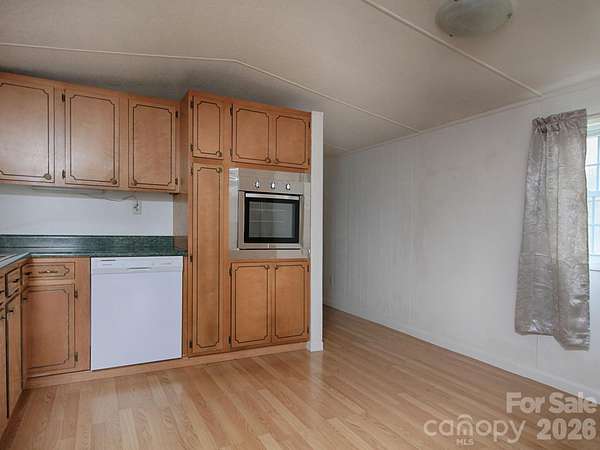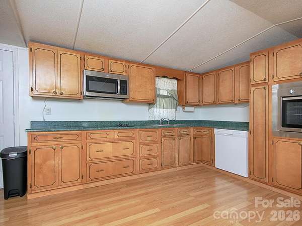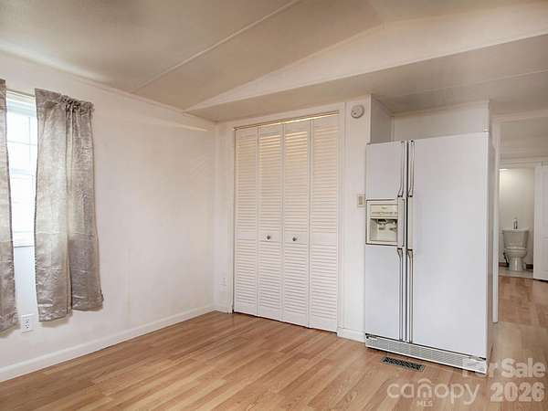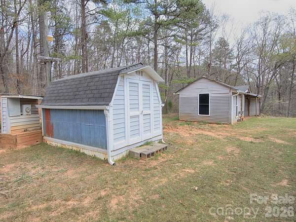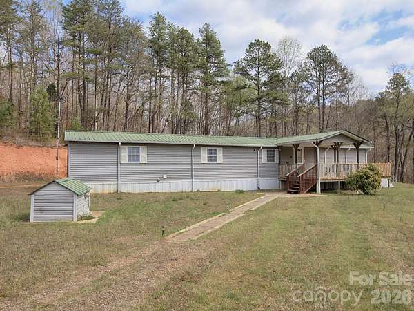 Nestled on 3.55 scenic acres bordering Buffalo Shoals Creek, this 1985 New Moon single-wide manufactured home (14' x 72') offers a peaceful, private setting with plenty of functional updates. As you sit on the covered front porch, you can enjoy the sounds of nature and the creek running by. The neat, well-maintained home features 2 bedrooms, each with its own walk-in closet, and 2 full bathrooms. Interior highlights include a convenient hallway coat closet, a dedicated laundry closet, and comfortable living spaces designed for easy everyday living. Enjoy the outdoors from the spacious covered front porch or relax on the rear deck, complete with an access ramp for added convenience. The property also includes a stand-alone utility building and an additional storage building with a lean-to, perfect for equipment storage. This home is equipped with a private well and private septic system and is wired for an exterior camera system, with existing cameras to remain. Major updates include a Payne (by Carrier) HVAC system installed in 2018 and plumbing upgraded to PEX throughout in October 2021. The kitchen was refreshed with House Style cabinetry in 2014 and comes fully equipped with appliances, including a Whirlpool double-door refrigerator with ice maker, a GE microwave with range fan and light, an Amana dishwasher (2021), cooktop (2014), updated oven, plus a washer and electric dryer. Additional improvements include double-pane, double-hung windows installed in the early 2000s, attractive laminate flooring throughout the main living areas, and linoleum flooring in the bathrooms. (Dates are approximate.) Effective March 18th, 2026, the home was converted to real estate by the NC Division of Motor Vehicles via cancellation of title number 770986211597101 and was registered as real property, as documented by the Iredell County Register of Deeds, BK 3201, PG 772-775. Sold in its current "AS IS" condition with the Buyer's right to do inspections. This home offers a great opportunity to enjoy country living with modern conveniences already in place! Hurry and check out this home now ... it's ready for you to move in and enjoy the spring season!