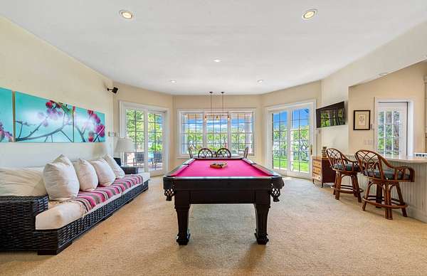 Situated on a picturesque quiet peninsula overlooking Shinnecock Bay all the way to the Ocean, this unique and very private 1.6 acre property has been just upgraded and renovated, including a brand-new full Chefs kitchen on the first floor, plus a new in-suite bedroom. Spectacular Post-Modern home featuring a total of 4 in-suite bedrooms, 5.5 full baths, steam shower, an open floor plan, living room, enjoy a primary ensuite with a fireplace and picture windows with the most spectacular water views, top-of-the-line appliances, you get stunning water views throughout the whole house. Additional amenities include a media room and game room with a pool table. The grounds feature lush landscaping with brand new designer lights, firepit, a heated gunite pool and spa overlooking the water, a private dock and mooring rights. This property faces South offering unobstructed views with the most amazing sunrises and sunsets. Enjoy the quiet and private unique peninsula location. Just less than 2.5 miles from the center of Southampton Village. Listing ID: 912568