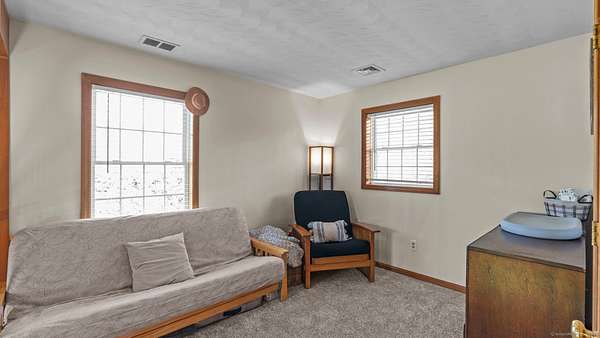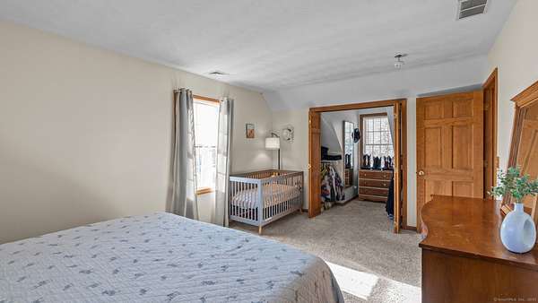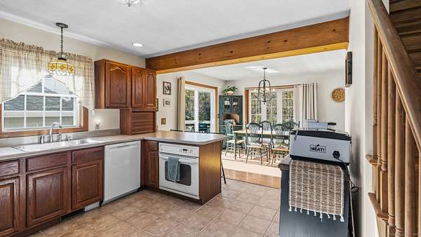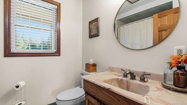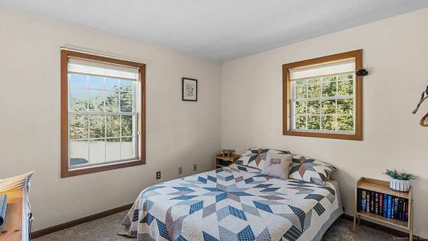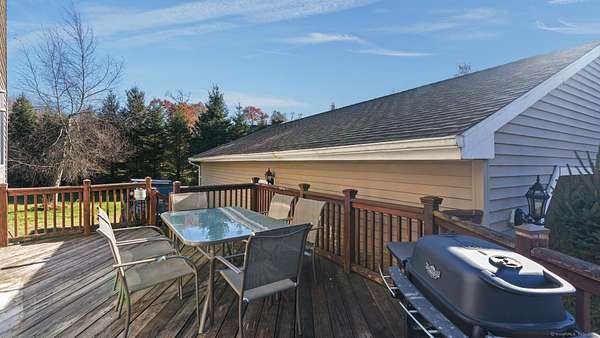Charming Cape on a Beautiful Level Lot! Welcome home to this inviting Cape featuring a warm and welcoming fireplaced living room with Split rail balcony and vaulted ceiling, perfect for relaxing or entertaining. The spacious eat-in kitchen offers plenty of natural light and functionality for everyday living. Enjoy central air conditioning for year-round comfort and unwind on the classic farmers porch front and back overlooking the picturesque yard. The property also includes a detached oversized two-bay garage, ideal for vehicles, hobbies, or extra storage. Set on a nice level lot, this home combines New England charm with modern conveniences-ready for you to move right in and make it your own!