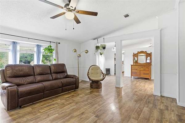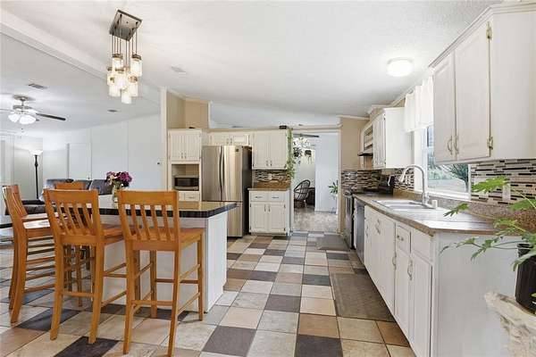 Inside, the 2,430 sq ft home offers 4 bedrooms, 2 full baths, and a spacious, open layout with two living areas—perfect for everyday living or gathering with family and friends. The kitchen includes a large breakfast bar, updated appliances, and a generous pantry with plenty of storage throughout. Fresh interior paint, double-pane windows, and updated fireplace panels give the home a clean, move-in-ready feel. The roof and skirting are approximately 8 years old and in excellent condition.