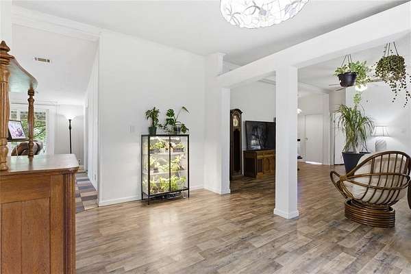 The land itself is something special, it has beautiful landscaping, peach trees and 16 mature live oak trees. It truly offers relaxation and tranquility.