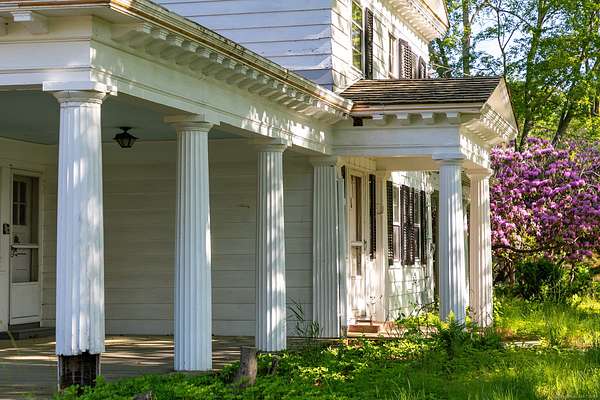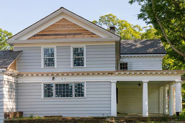 Greek Revival Splendor! A structure of noble proportions & architectural significance stands prominently at the center of this pastoral expanse. This 13+acre estate features a cleared upper meadow with open western views, presenting another prime building opportunity to capture the sunsets over Steep Rock Preserve. Currently under renovation, the floor plan has been fully opened up to create spacious living areas with high ceilings, marrying the grandeur of the past with the modern desire for open, airy spaces. Previously a 6 bed, 4.5 bath home which has been totally cleared out to the studs, this is an honest house; a total blank canvas! Key upgrades include wide-plank chestnut flooring, newly installed HVAC and plumbing together with cast iron radiators for each room. The exterior is adorned with new wood siding, windows, cedar shingle roof and a copper roof, elements that speak to the quality and attention to detail that will define this renovation. On-site materials, both new & original, are available to aid in the restoration and customization of the structures, allowing for a seamless blend of old-world craftsmanship & contemporary convenience. A Pool, historic stone walls, spring-fed pond and rustic barn on the property add to the allure. With a historical pedigree that is sure to impress, this property is ready for its next steward, offering a tremendous opportunity to customize and create a personal haven. Survey, Renderings & Floorplans are available upon request.
