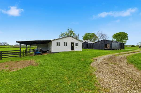 If you have been waiting for something that feels like home the moment you turn down the driveway, this is it. Nestled on 12.5 breathtaking acres, this one-of-a-kind property offers 4 paddocks, a foaling barn, a two-car detached garage, and four utility outbuildings. And now the home: with 2,312 square feet sitting proudly on an unfinished basement, this magnificent residence gives you space to breathe, grow, and truly live. It's the type of home that makes the Bluegrass famous. Stepping inside, you are instantly greeted by a spacious open floor plan decked with incredible hardwood floors that stretch throughout the main level and lead you into a warm, inviting den filled with natural light. Every window frames the gently rolling hills, blooming trees, and sunsets that seem to linger just a little longer each evening. It is hard to believe you are only ten minutes from town when you are surrounded by this much peace and beauty. Upstairs you will find three bedrooms and a full bathroom, offering comfort and privacy for family or guests. On the main level, just off the sitting room, you have the option of an additional guest bedroom, a home office, or whatever the seasons of life call for. The kitchen is large. It has been thoughtfully cared for and lovingly lived in. It is a space where memories have been made and where countless more are waiting to unfold. The unfinished basement offers endless potential, whether you envision a workshop, extra storage, a home gym, or future finished living space designed exactly to your taste. Scrolling through these photos will make you smile. Walking through the front door is when your heart will know. Properties like this do not come around often. If you wait too long, this opportunity may be gone. Schedule your private showing today and experience the serenity and potential yourself.