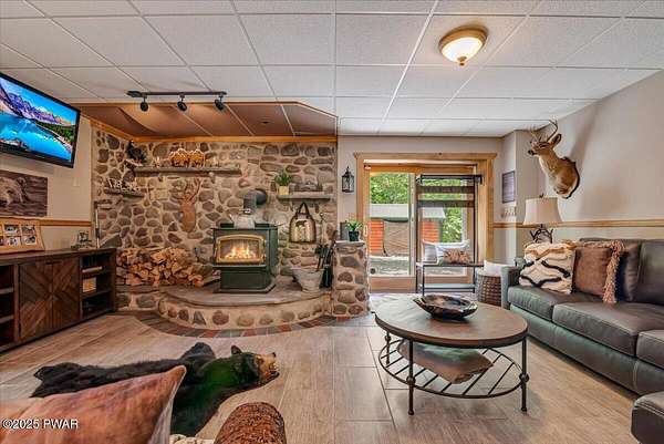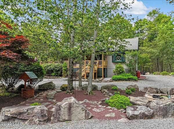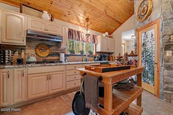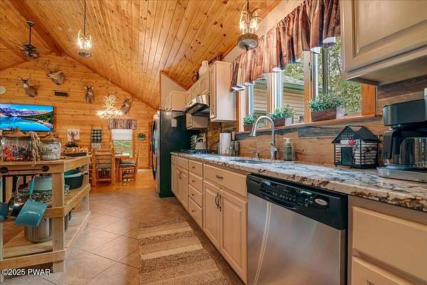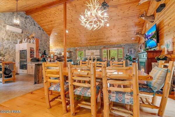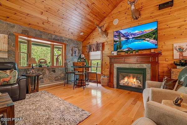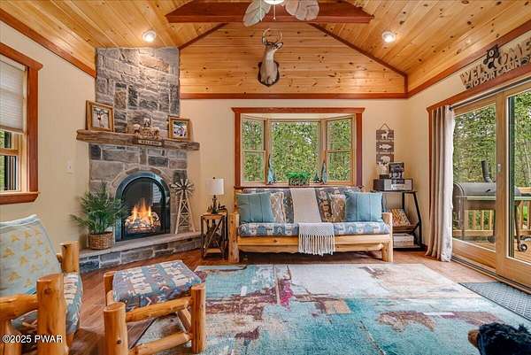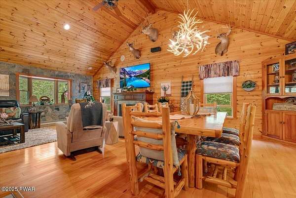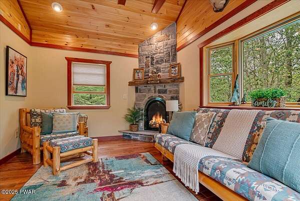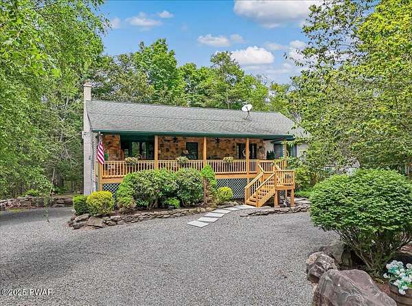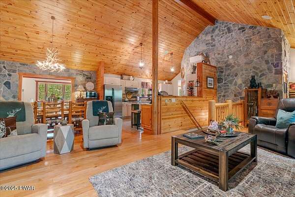 Welcome home to this absolutely FANTASTIC home nestled on 4.85 acres in a very quiet location, PERFECT for fishing, camping, gathering or just relaxing! This home features GORGEOUS tongue & groove w/ vaulted ceilings and tons of space within the open floor plan main level. Enjoy custom stonework throughout the entire home! Attention to detail in every inch! Brand new kitchen with custom cabinets, granite countertops, stainless appliances and ceramic tile flooring. Enjoy a huge living room, dining room and gathering room leading out to the new back deck. Main level has a primary bedroom suite with a walk-in closet and the most beautiful, custom bathroom with double sink and custom tile work. It really is a MUST SEE! Home has multiple fireplaces that create such ambiance and make it feel very cozy! Head downstairs and enjoy a fully finished basement w/ a family room, a full bath plus laundry room & 4 bedrooms. This space gives you PLENTY of room to invite everyone!In total, this home features 5 bedrooms, 2.5 baths and 3 family/gathering areas inside, a covered front porch and rear deck outside! Head outside and enjoy the property without disruption. There are no homes within sight! It really is the perfect escape!Enjoy the peace and quiet that only a place in the country can offer!