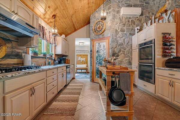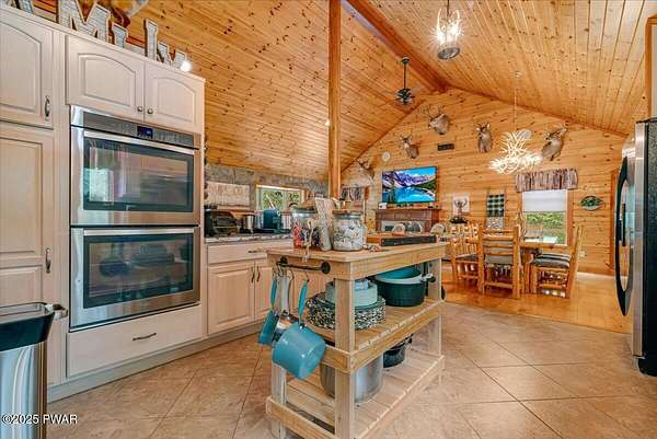 - Cathedral Ceiling(s), Chandelier, Double Vanity, Eat-In Kitchen, Entrance Foyer, Granite Counters, High Ceilings, Kitchen Island, Natural Woodwork, Open Floorplan, Pantry, Walk-In Closet(s)