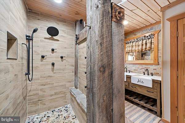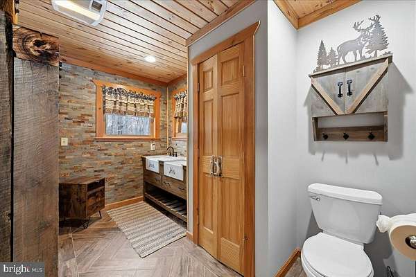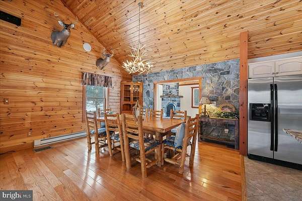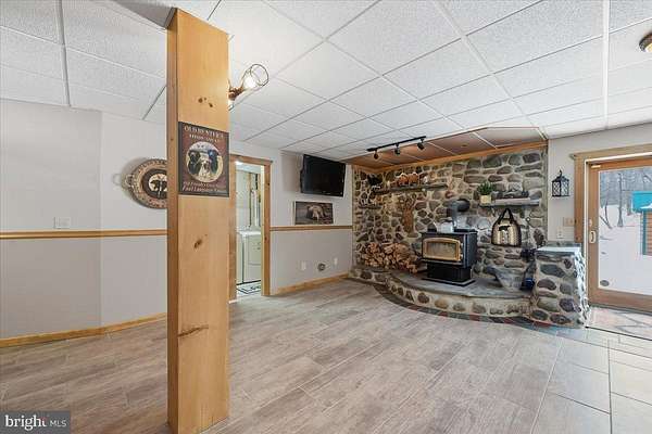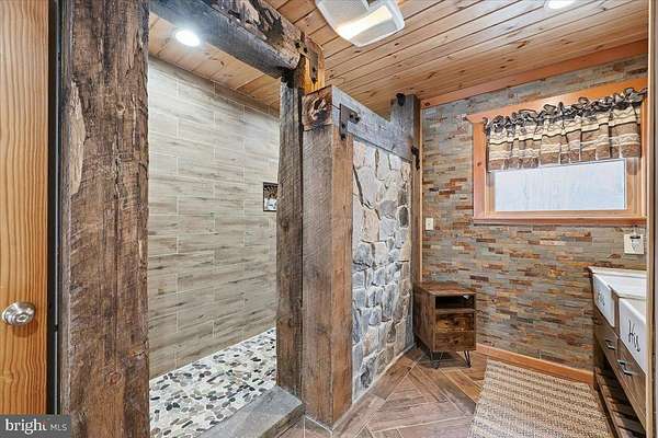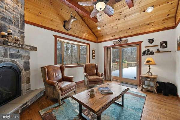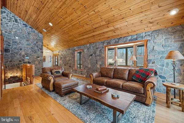 Behind a private wooded approach in Greene Township, 10+ acres unfold into a mountain ranch defined by vaulted tongue-and-groove ceilings, handcrafted stonework, and elevated mountain views. The setting is quiet, secluded, and purpose-built for privacy and recreation. The main level centers around a dramatic great room with hardwood floors and wood ceilings creating warmth and scale. The kitchen blends rustic texture with modern functionality, featuring granite countertops, custom cabinetry, and stainless appliances. The primary suite is located on the main level, while the finished walk-out lower level expands the footprint with additional bedrooms, a full bath, and a second family room with stone hearth and stove - ideal for extended stays or multi-generational living. Outdoors, the property is designed for year-round enjoyment: a covered front porch, rear deck overlooking rolling acreage, detached 2-car garage, and a private on-site shooting range positioned within the wooded acreage. The sale includes three separately deeded parcels totaling 10.99 acres, creating long-term flexibility for expansion, recreation, or future land hold value. Private well and septic. Electric baseboard heat with propane assist. Central air. Located within the Wallenpaupack Area School District. A rare opportunity to control nearly 11 acres of Pike County landscape with built-in recreational infrastructure already in place and Jack Frost, Big Boulder and Camelback all within 30 minutes!