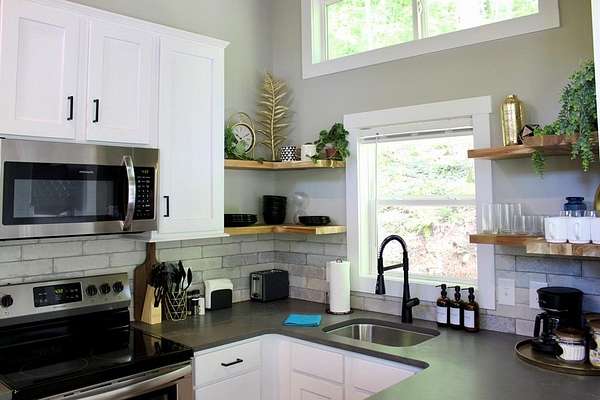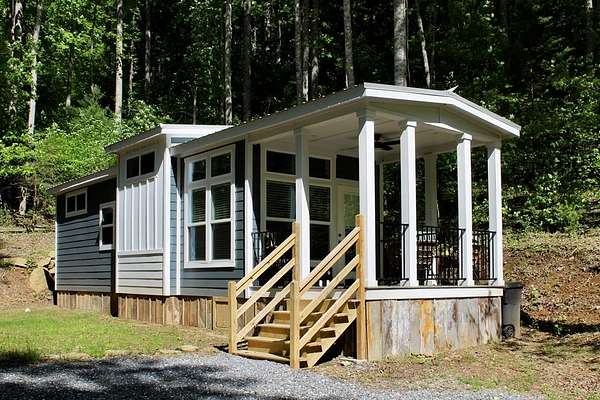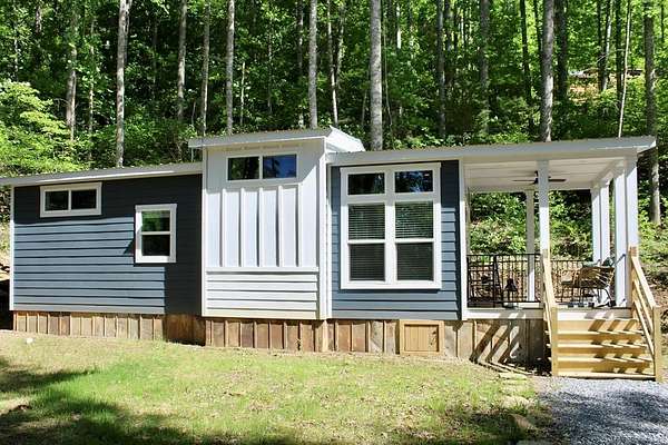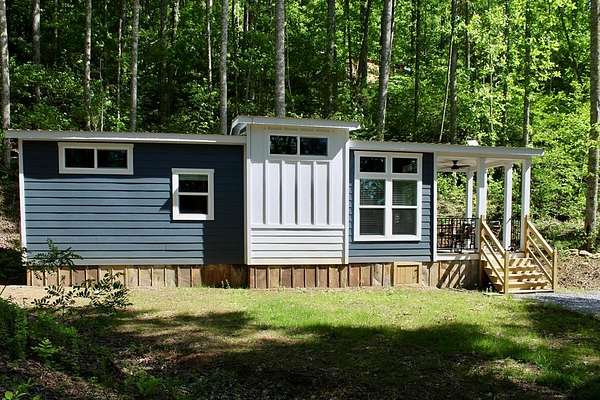 Est $1,089/moBack on the market and ready to sell! Enjoy mountain living in this tiny home. Great view from this 1.89 acre lot. This tiny home comes fully furnished and decorated with everything to live or use as a rental. Home features a built-in desk and table perfect for working from home. Home also includes a stackable washer/dryer. Come sit on the porch and enjoy dining, visiting with friends, or take in the beauty of the surrounding area. Gated community and close proximity to town add to the list of positives.