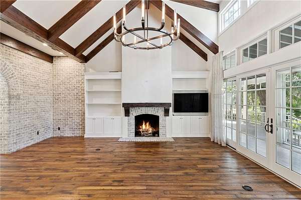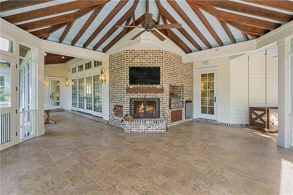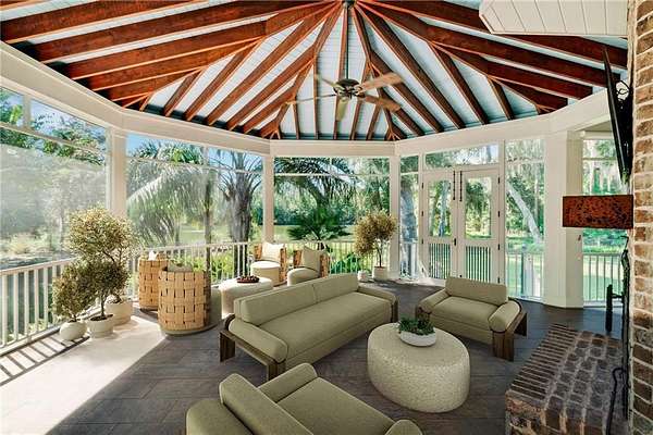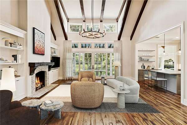 Welcome to 134 Telford Lane! Gracefully settled beneath a canopy of centuries-old oaks, this Low Country estate embraces 2.47 acres of serene lakefront living. Every view is softened by filtered light and framed by sweeping porches, where evenings end with golden sunsets dancing across the water. The architecture feels both refined and storied, with the addition of a carriage house lending the sense that this home has been cherished and thoughtfully expanded across generations. Ideally located just a minute's walk from the resident's gate, this home offers effortless access to nearby shops, cafes, and dining. Enjoy serene tranquility when desired, while remaining intimately connected to the area's most distinguished local establishments. Inside, an elegant gallery invites you forward, offering curated spaces for art and antiques before revealing the heart of the home--a soaring great room with beamed ceilings, a brick fireplace, and custom built-ins. From here, the living experience unfolds seamlessly into the kitchen and screened porch. The kitchen itself is a gathering place, anchored by dual islands and fitted with chef-worthy appliances, designed as much for connection as for culinary excellence. The primary suite occupies a private wing, with vaulted ceilings, dual closets, and a spa-inspired bath oriented to the water. A richly paneled study opens to a sleeping porch complete with swing, inviting afternoons of quiet reflection. The screened porch blurs the line between indoors and out, its brick fireplace, built-in grill, and lakeside backdrop creating the perfect ambiance for relaxed entertaining. Beyond, a stone fire pit and a private dock rest beneath the shelter of oaks, offering intimate moments with nature. Throughout, craftsmanship speaks in the details--heart pine floors, floor-to-ceiling windows, impact glass doors, integrated sound, and soaring ceilings at every turn. Two guest suites on the main level welcome visitors with comfort and views, while the carriage house extends hospitality with its own two-car garage, private bedroom, en-suite bath, and a sitting room with kitchenette. This home is not just a residence, but a narrative--woven with Southern charm, timeless design, and an unshakable sense of place. Membership application rights for a Full Golf Membership at Frederica Golf Club available to the purchaser, please inquire for more information.