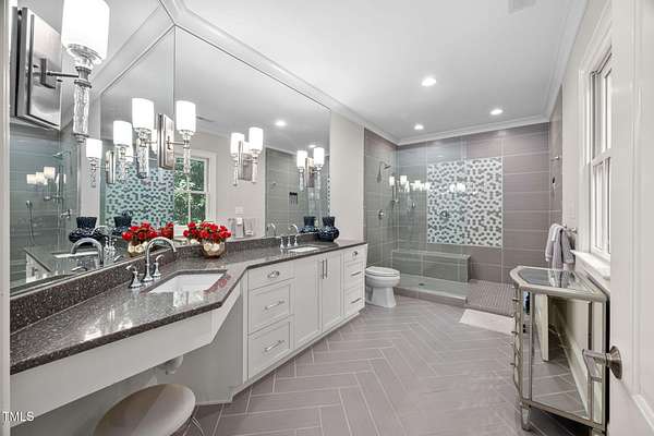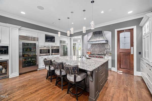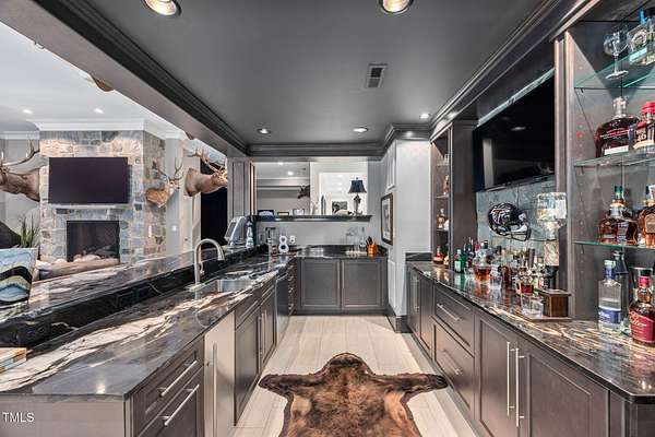 - Bar, Bookcases, Breakfast Bar, Built-In Features, Cathedral Ceiling(s), Ceiling Fan(s), Chandelier, Coffered Ceiling(s), Crown Molding, Double Vanity, Dual Closets, Eat-In Kitchen, Elevator, Entrance Foyer, Granite Counters, High Ceilings, High Speed Internet, Kitchen Island, Open Floorplan, Pantry, Primary Downstairs, Recessed Lighting, Second Primary Bedroom, Separate Shower, Smart Thermostat, Smooth Ceilings, Soaking Tub, Sound System, Tray Ceiling(s), Vaulted Ceiling(s), Walk-In Closet(s), Walk-In Shower, Wet Bar, Wired For Data, Wired For Sound