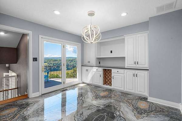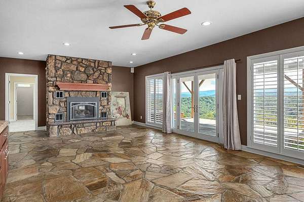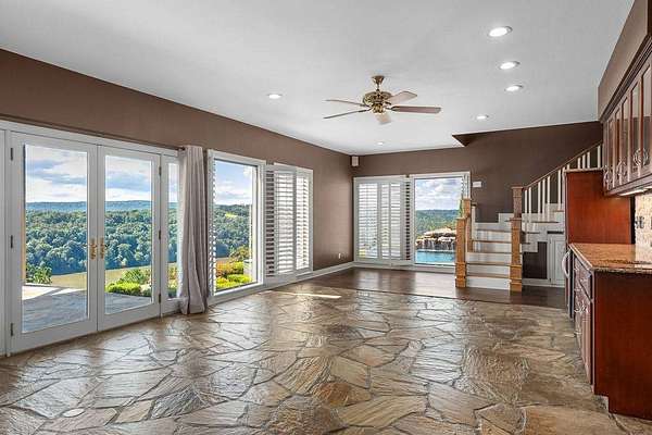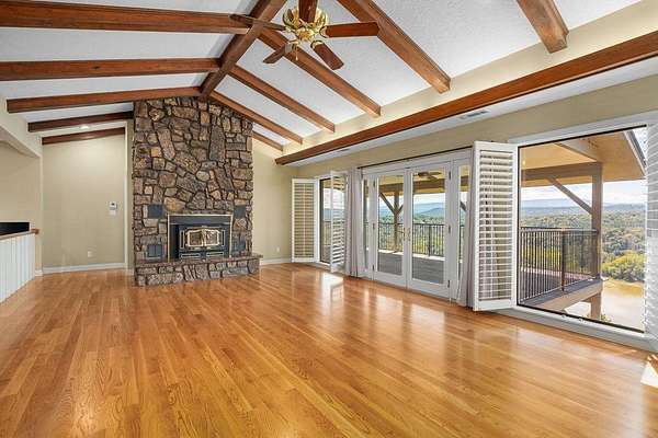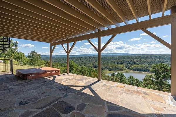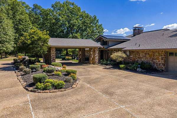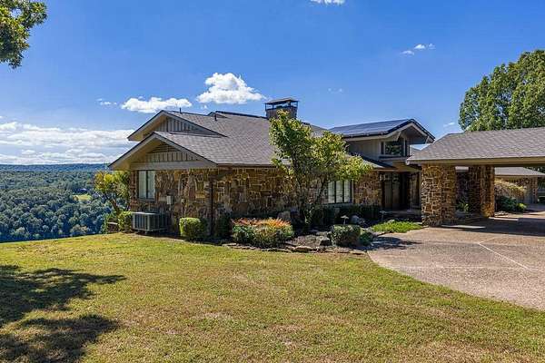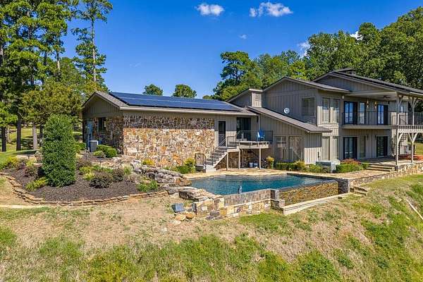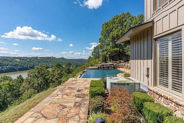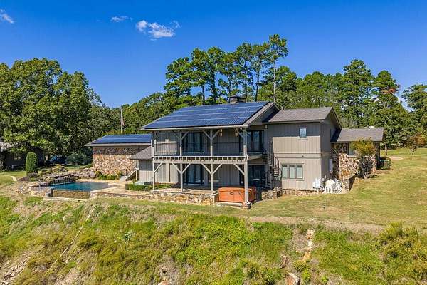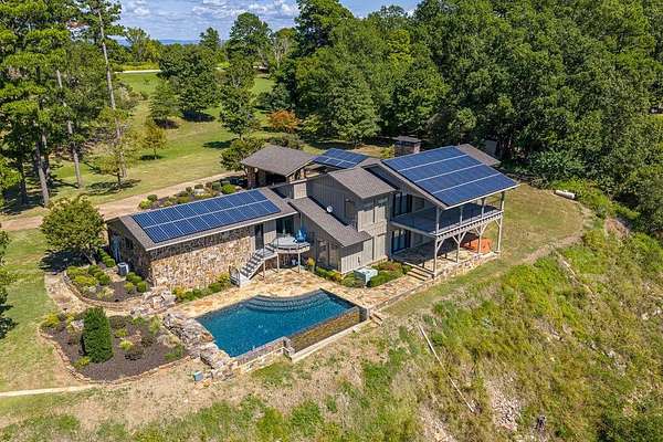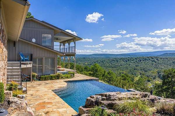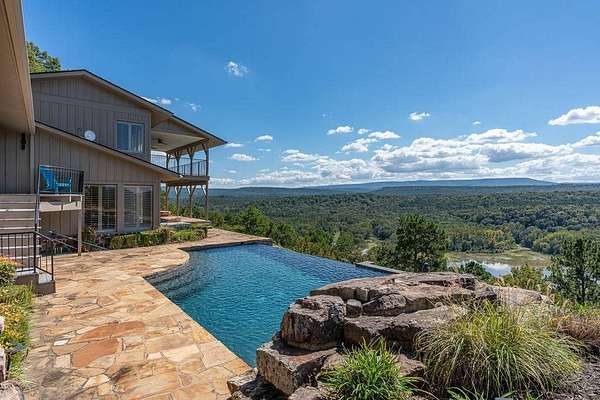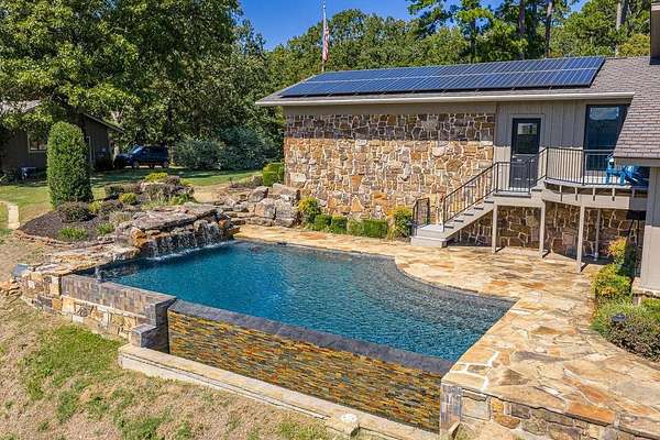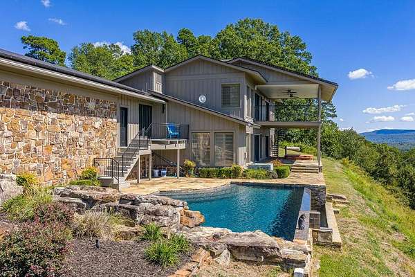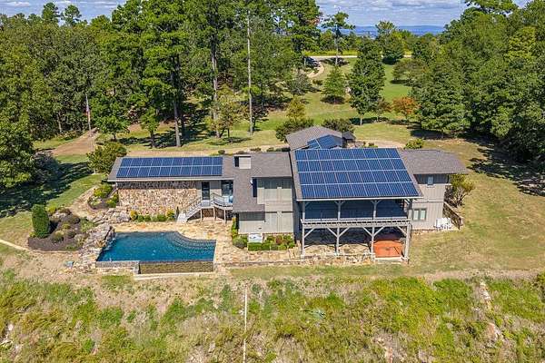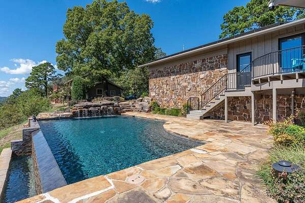 This architecturally designed home was once featured in the " At Home In Arkansas" magazine publication, where it highlighted the carefully engineered pool that was hand dug into the bluff. Along with the rock waterfall feature this 16,000 gallon infinity pool truly does make it feel like an oasis. Your magnificent views to the south include the beautiful Mt. Magazine and the Paris City Lake. Those views are definitely taken full advantage of with the way this home was constructed. The walk out flagstone patio, beautiful deck on the third level, the large windows, and patio doors all bring the beauty of the outdoors inside and are a part of what makes this home design so special. Each of the three levels has its own bedroom and en suite bath. The kitchen was renovated last year adding granite countertops, a quartz island, under cabinet lighting, a pan filler over the stove, and man-made marble floors that won't scratch! On the lower level there is a nice gathering space with a tidy bar area that leads to the patio and there is also a lovely large room on the third level that leads out to the deck. Both of these spaces would make it ideal for entertaining. One of the best things about this home are the paid off solar panels! These panels dramatically cut your electric bill, which make living in this home very economical. Whether your retired, just starting out, or just want that perfect get away place, this is truly a home you would never want to leave! *Home can be shown by appointment, and will need to provide a pre-qual letter or proof of funds.